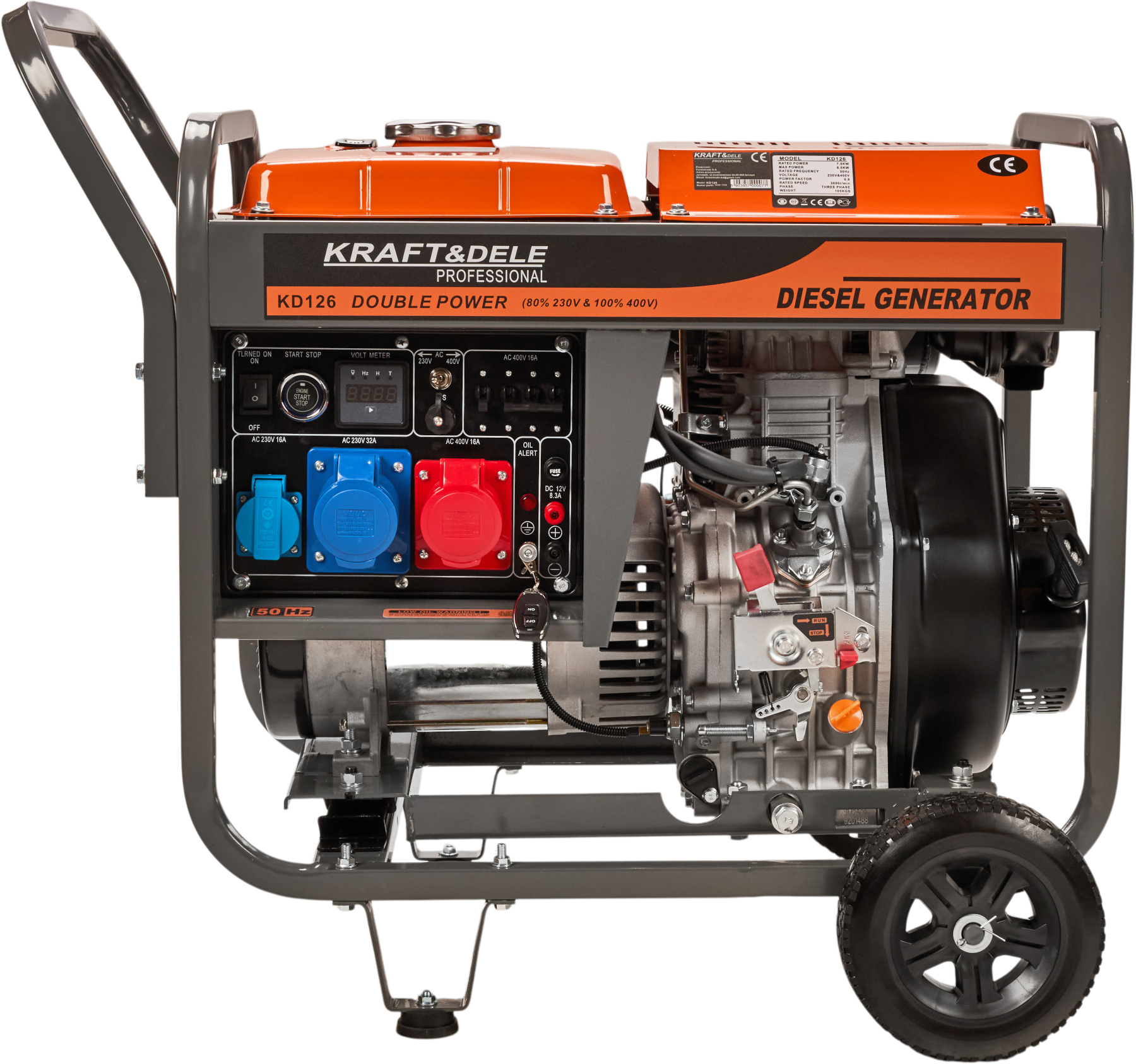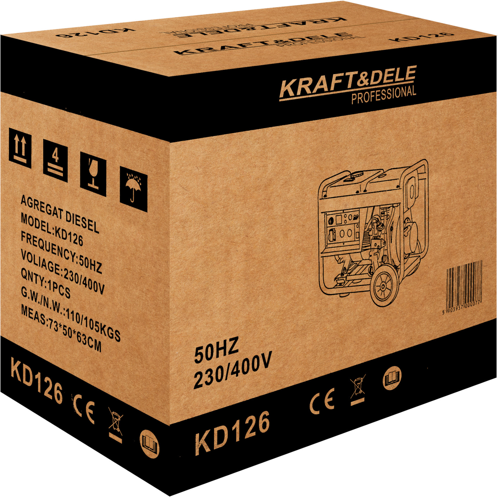 KD126 to profesjonalny agregat prądotwórczy marki KRAFT&DELE, przeznaczony do intensywnych zastosowań w firmach, gospodarstwach, na placach budowy, w lokalach gastronomicznych oraz w domach jednorodzinnych. Solidna konstrukcja, wysoka masa własna 110 kg oraz precyzja wykonania świadczą o klasie przemysłowej urządzenia i jego gotowości do długotrwałej pracy pod obciążeniem.