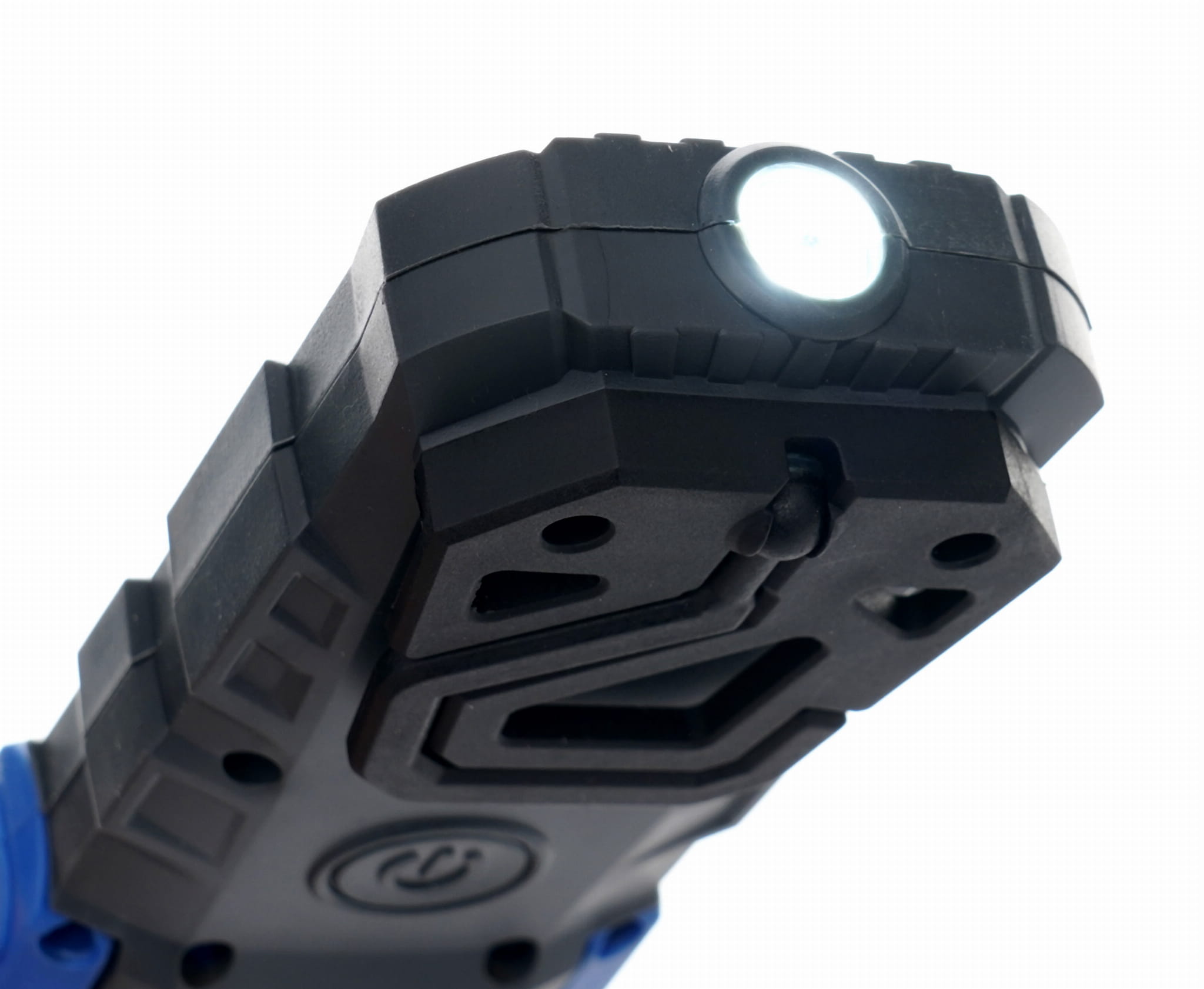 W podstawę został wbudowany magnes, który zwiększa komfort pracy. Z łatwością przyczepimy lampę do maski auta.  Posiada także hak, umożliwiający nam zawieszenie lampy w dowolnym miejscu. Dodatkowo została wyposażona w światło punktowe.