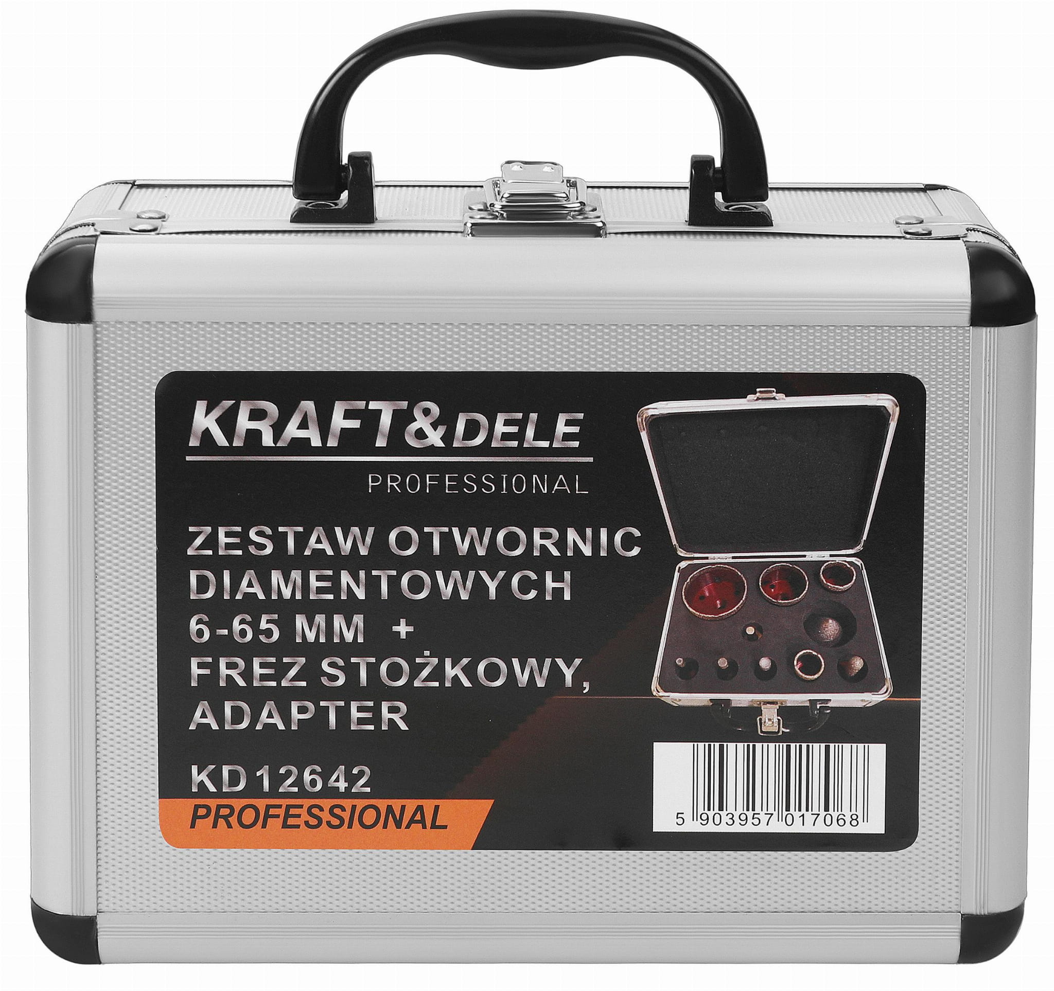 Zestaw otwornic diamentowych KRAFT&DELE KD12642 to kompletny zestaw narzędzi do precyzyjnego wiercenia otworów w materiałach twardych, takich jak ceramika, gres czy kamień. Dzięki różnorodnym średnicom otwornic, frezowi stożkowemu oraz adapterowi - praca staje się szybka, precyzyjna i komfortowa.