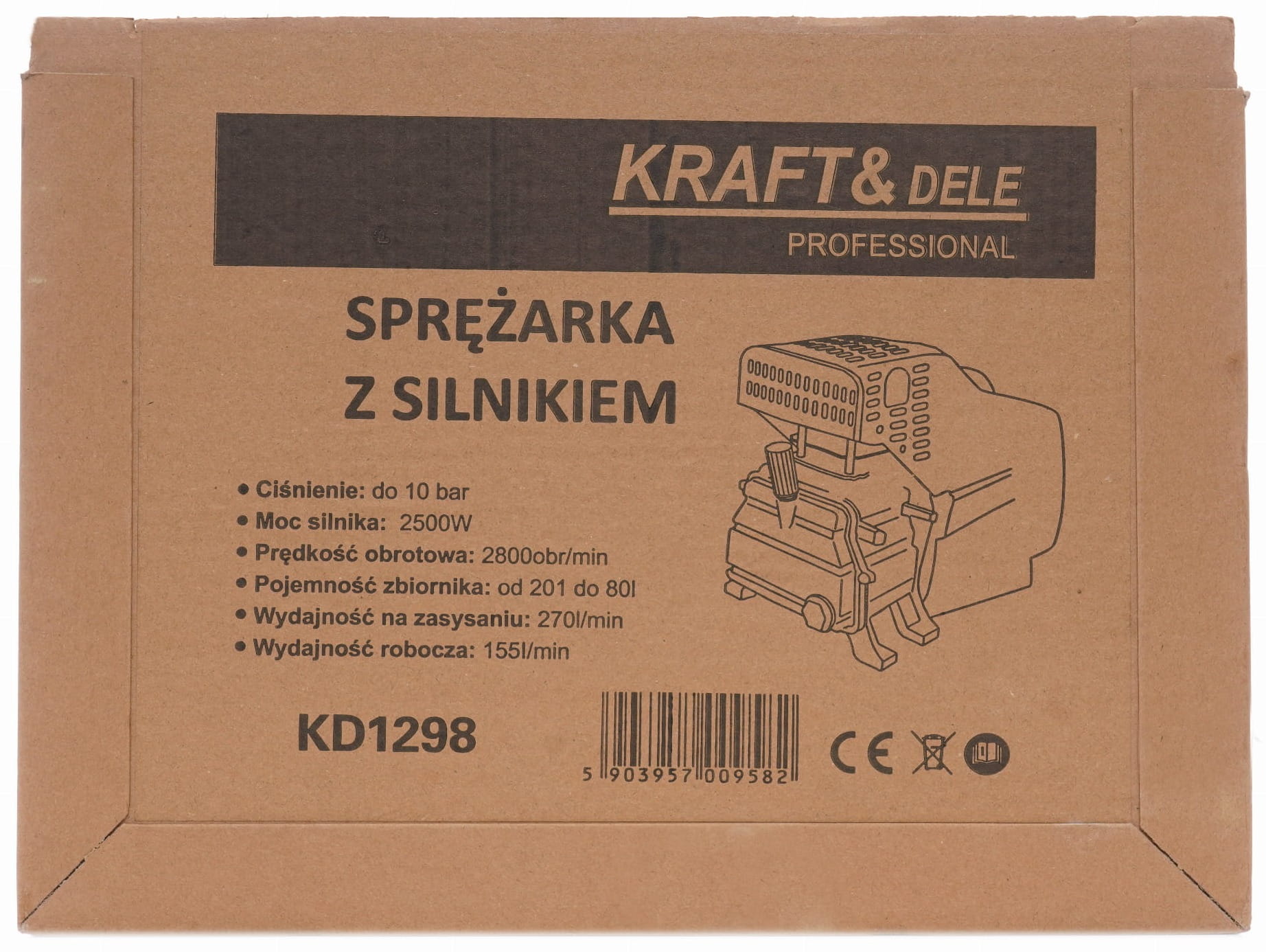 Sprężarka powietrza; kompresor powietrza; sprężarka elektryczna; kompresor 270 L/min; sprężarka warsztatowa; kompresor do domu; sprężarka Kraft&Dele;
