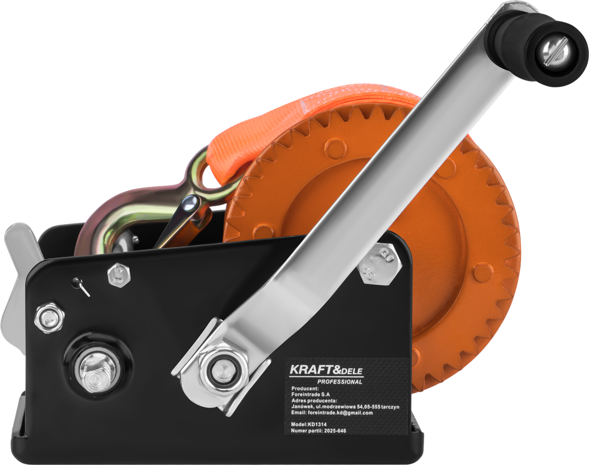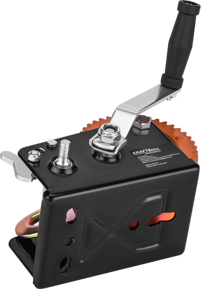 Dzięki mocnemu, hakowi urządzenie gwarantuje pewne mocowanie i płynną pracę. Korbowa obsługa umożliwia bezpieczne manewrowanie ładunkiem, a stabilna konstrukcja przekładni zwiększa efektywność i żywotność wciągarki.