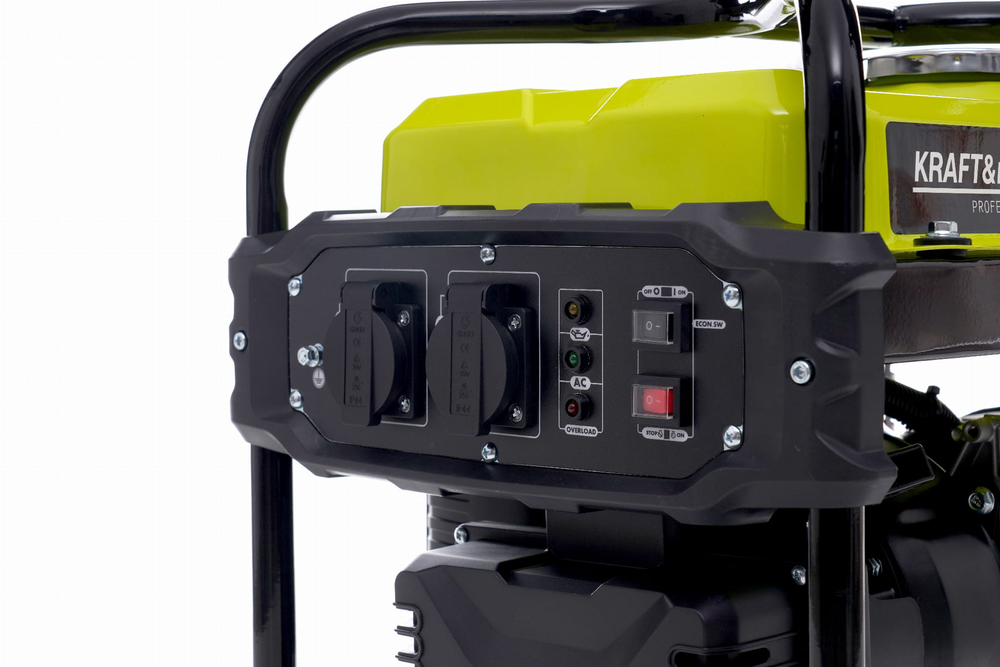 | ⚙️ Funkcje dodatkowe | Regulacja obrotów, tryb oszczędny, stabilizacja napięcia i częstotliwości, wskaźniki napięcia, przeciążenia i poziomu paliwa |