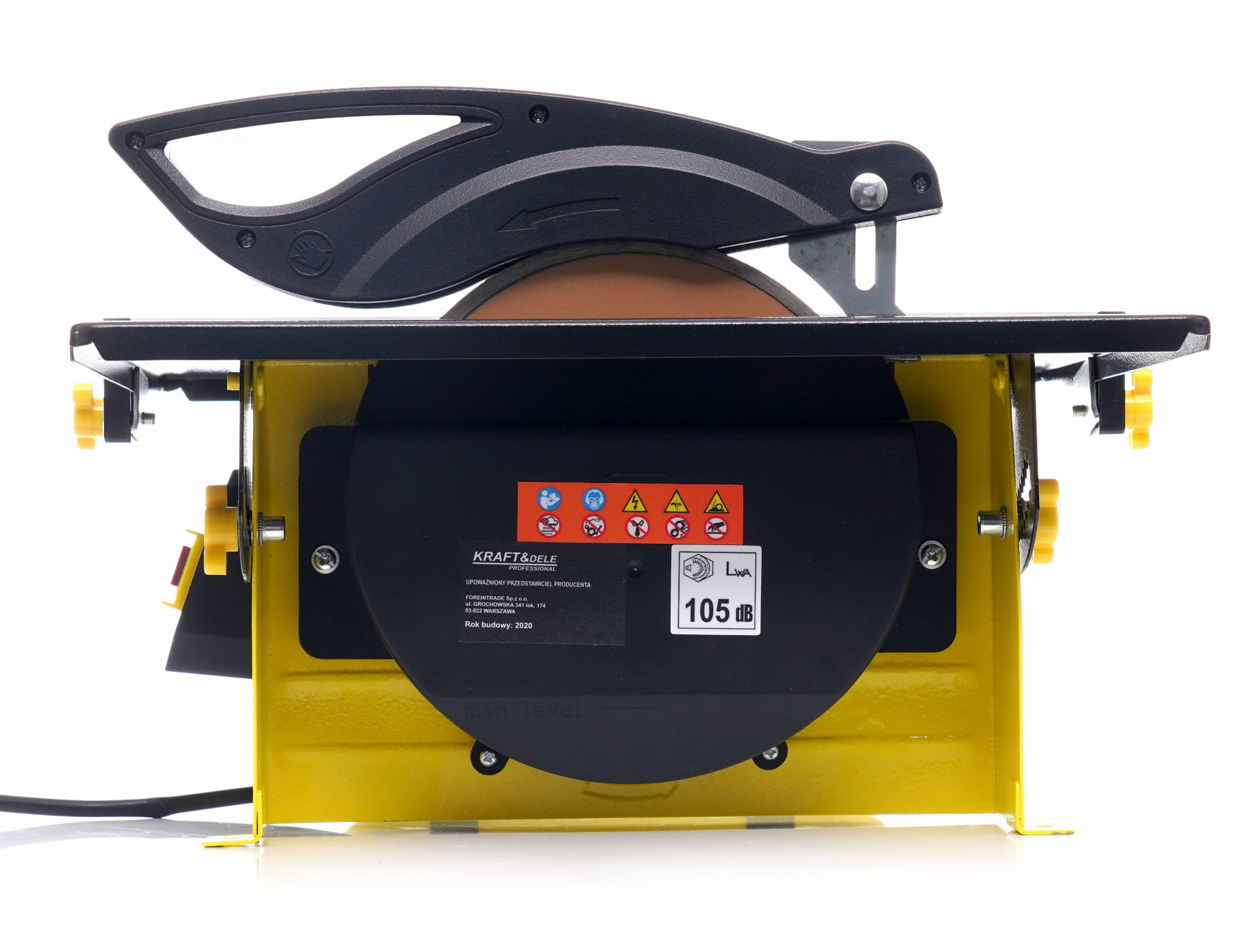 Piła stołowa KD1371 polskiej marki Kraft&Dele przeznaczona do cięcia płytek małych i średnich. Urządzenie pozwala na cięcie pod różnym kątem (45°-90°). Urządzenie służy do cięcia na mokro – podczas pracy tarcza jest mokra.