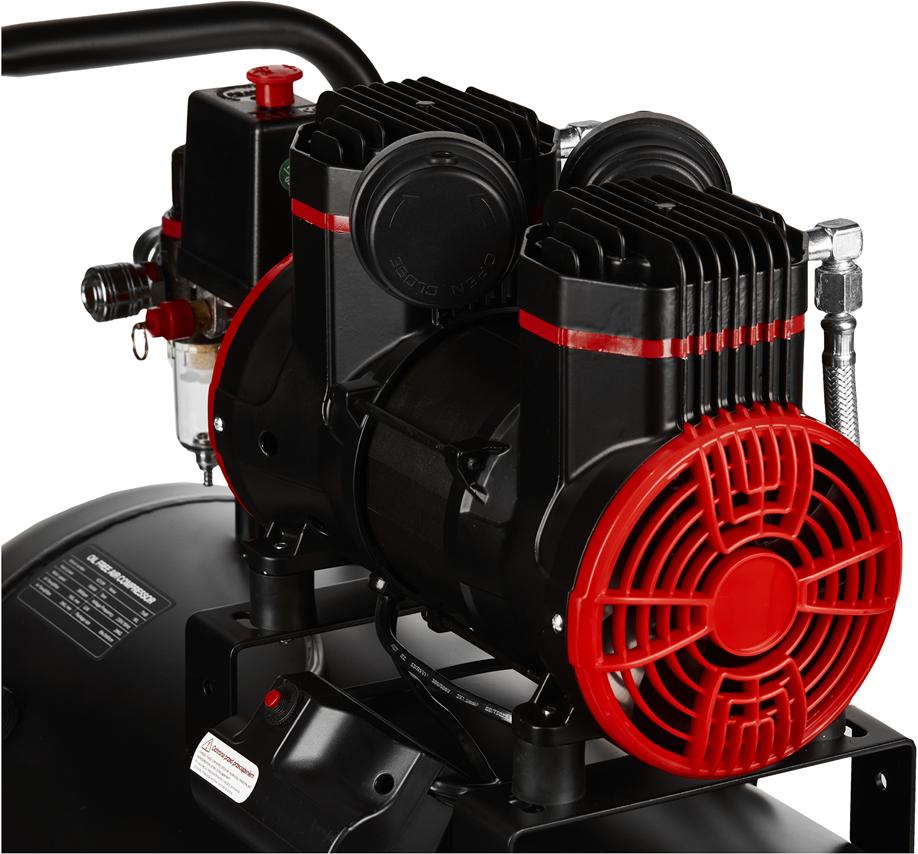 Kompresor charakteryzuje się maksymalnym ciśnieniem 8 bar oraz dobrą wydajnością ssania, co zapewnia sprawną i efektywną pracę. Bezolejowa konstrukcja eliminuje konieczność uzupełniania lub wymiany oleju, a także pozwala uzyskać stosunkowo czyste źródło powietrza przy niskim poziomie hałasu wynoszącym 75 dB. Zastosowany system wylotowy wraz z aluminiowymi zaworami umożliwia zwiększoną szybkość przepływu powietrza.