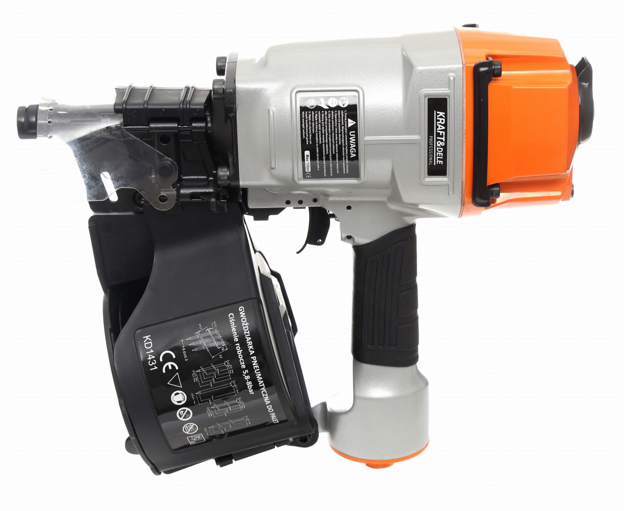 Profesjonalna gwoździarka bębnowa na gwoździe o długości od 50 do 83mm. Korpus wykonany z ciśnieniowo odlewanego stopu na bazie magnezu. Posiada obrotowa dyszę wylotu powietrza, bezpiecznik chroniący przed przypadkową aplikacją, system ładowania bocznego ,ochraniacz i osłonę przeciwpyłową. Zastosowanie szerokiej, wzmocnionej lufy zapobiega zbyt szybkiemu ścieraniu.