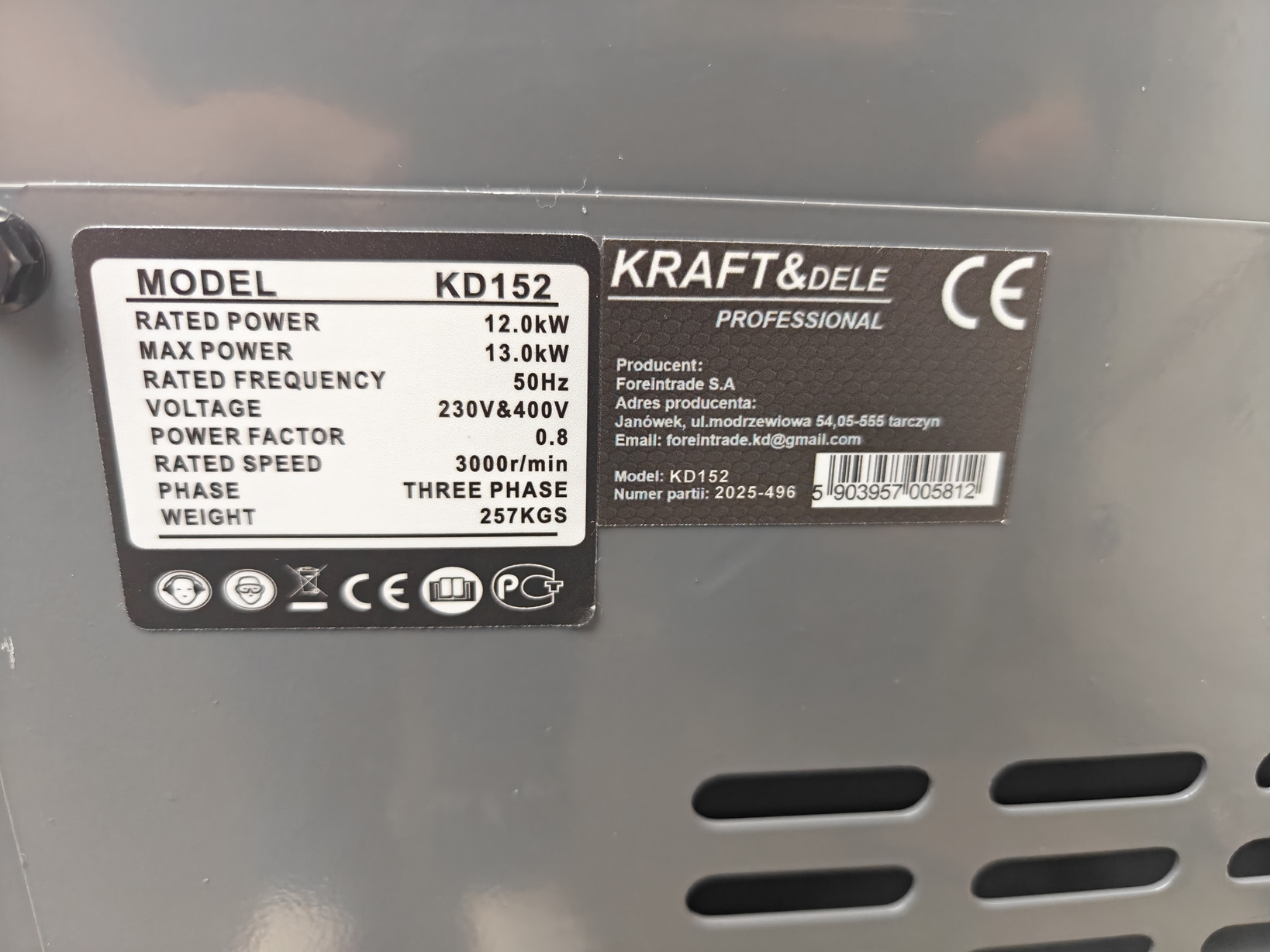 ✅ Agregat prądotwórczy model KD152