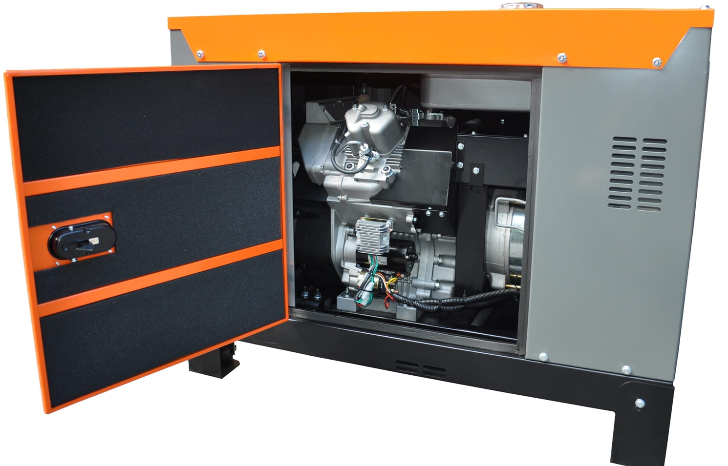 Agregat wyposażony jest w dwucylindrowy silnik V-twin chłodzony powietrzem oraz elektryczny rozruch, co zapewnia wygodne uruchamianie i stabilną pracę. Wbudowany system stabilizacji napięcia AVR odpowiada za utrzymanie stałych parametrów prądu. Urządzenie posiada wskaźniki napięcia, przeciążenia oraz poziomu oleju, zwiększając bezpieczeństwo i komfort użytkowania.