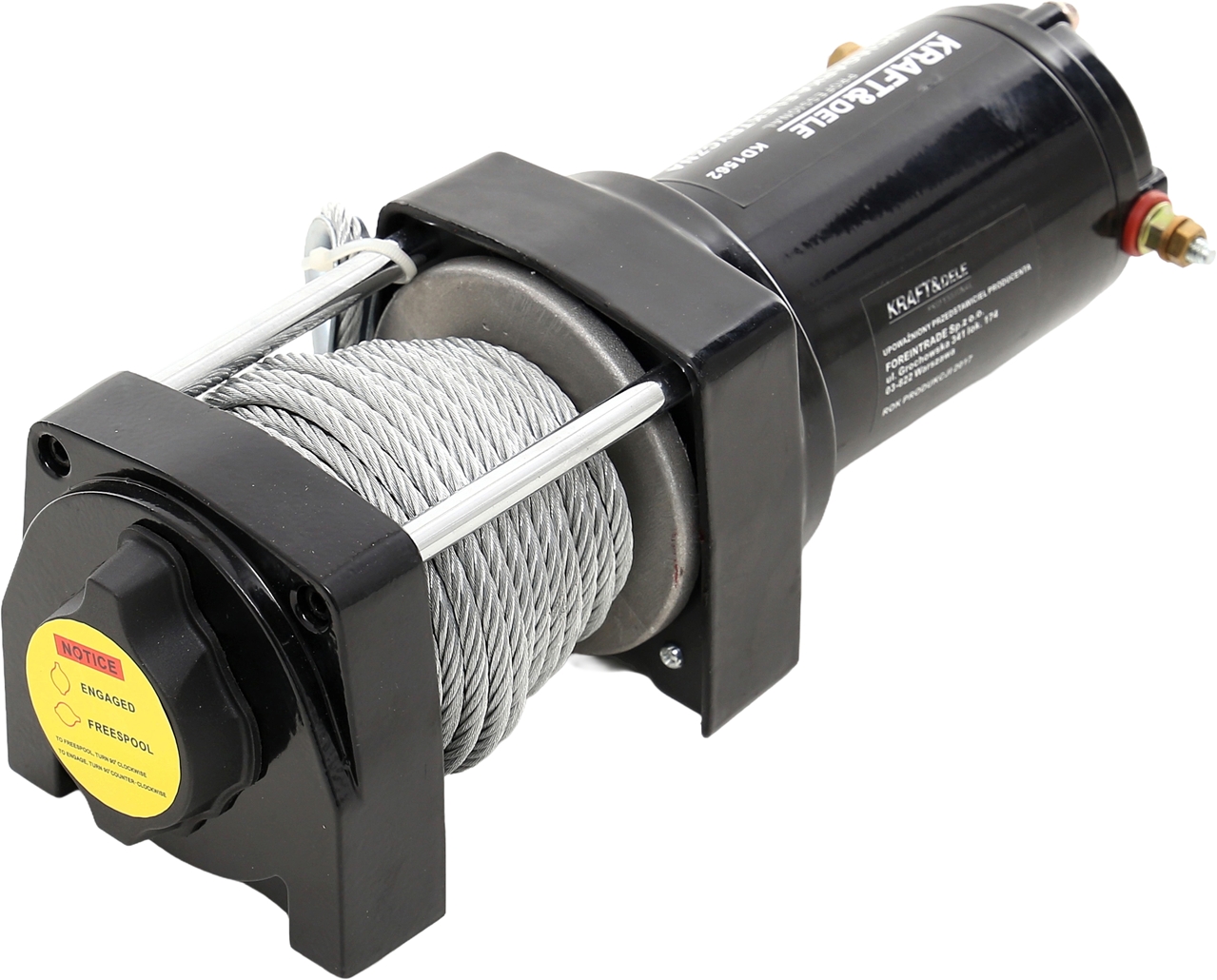 KD1562 to solidna wciągarka elektryczna marki KRAFT&DELE, przeznaczona do pracy w trudnych warunkach terenowych oraz warsztatowych. Dzięki uciągowi do 1361 kg (3000 lbs) doskonale sprawdzi się w samochodach terenowych, quadach oraz podczas prac budowlanych i transportowych.