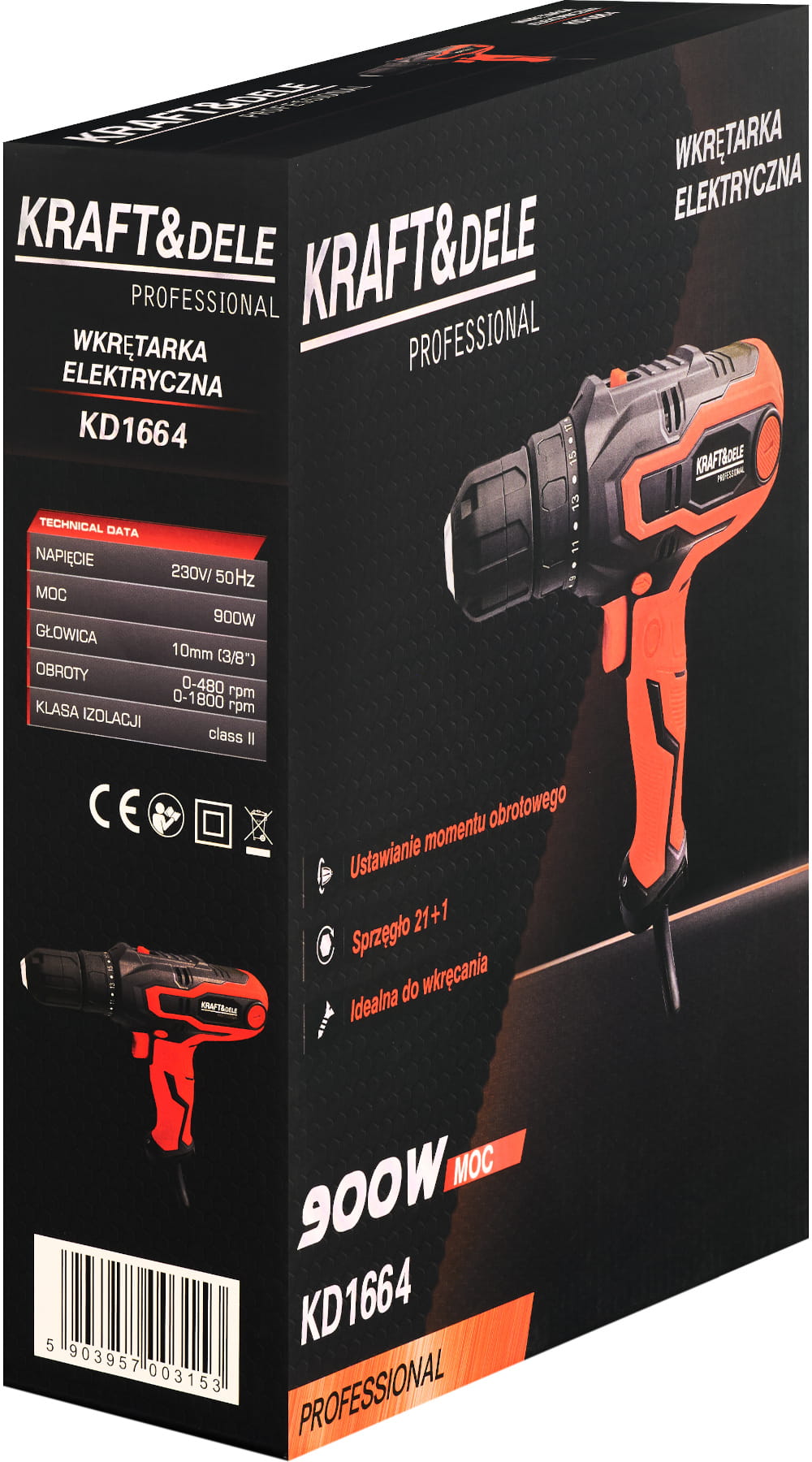 Wkrętarka KD1664 marki KRAFT&DELE to niezawodne narzędzie, które sprawdzi się zarówno w domu, warsztacie, jak i w profesjonalnej firmie. Urządzenie sieciowe o mocy 900W umożliwia wydajną i bezpieczną pracę bez potrzeby ładowania akumulatorów.