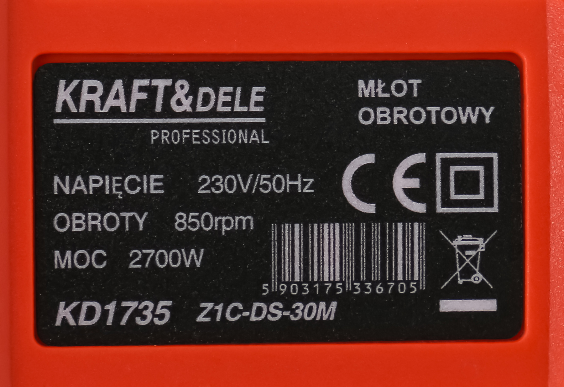 KD1735 to wydajny młot udarowy marki KRAFT&DELE, przeznaczony do wymagających prac budowlanych, remontowych oraz warsztatowych. Dzięki wysokiej mocy 2700W oraz energii udaru 6J urządzenie doskonale sprawdza się podczas wiercenia, kucia oraz pracy w twardych materiałach.