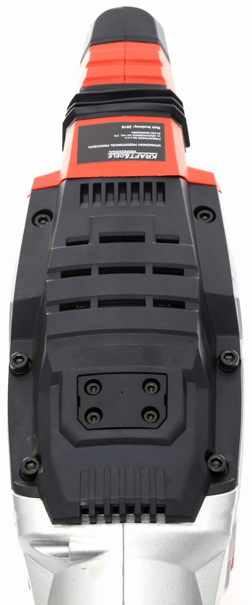 Urządzenie posiada dodatkowy, ergonomiczny uchwyt umieszczony w przedniej części obudowy, zapewniający doskonałą stabilność, kontrolę i precyzję podczas pracy. Odpowiednie wyważenie oraz wydajność sprawiają, że korzystanie z młota jest wygodne i mniej obciążające dla użytkownika, nawet podczas długotrwałych zadań.