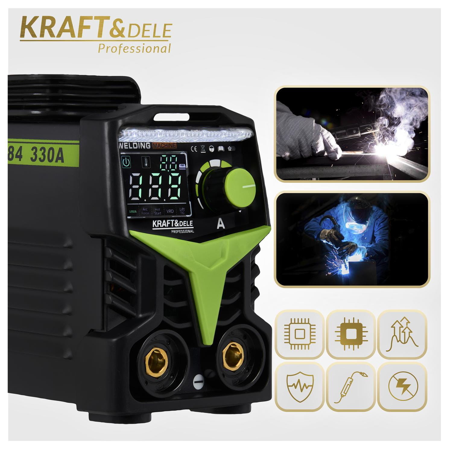 Nowoczesna spawarka inwertorowa marki Kraft&Dele model KD1784 to urządzenie przeznaczone do spawania łukowego elektrodą otuloną. Spawanie elektrodami otulonymi to metoda spawania łukowego przy pomocy topliwej elektrody metalowej pokrytej otuliną topnika.