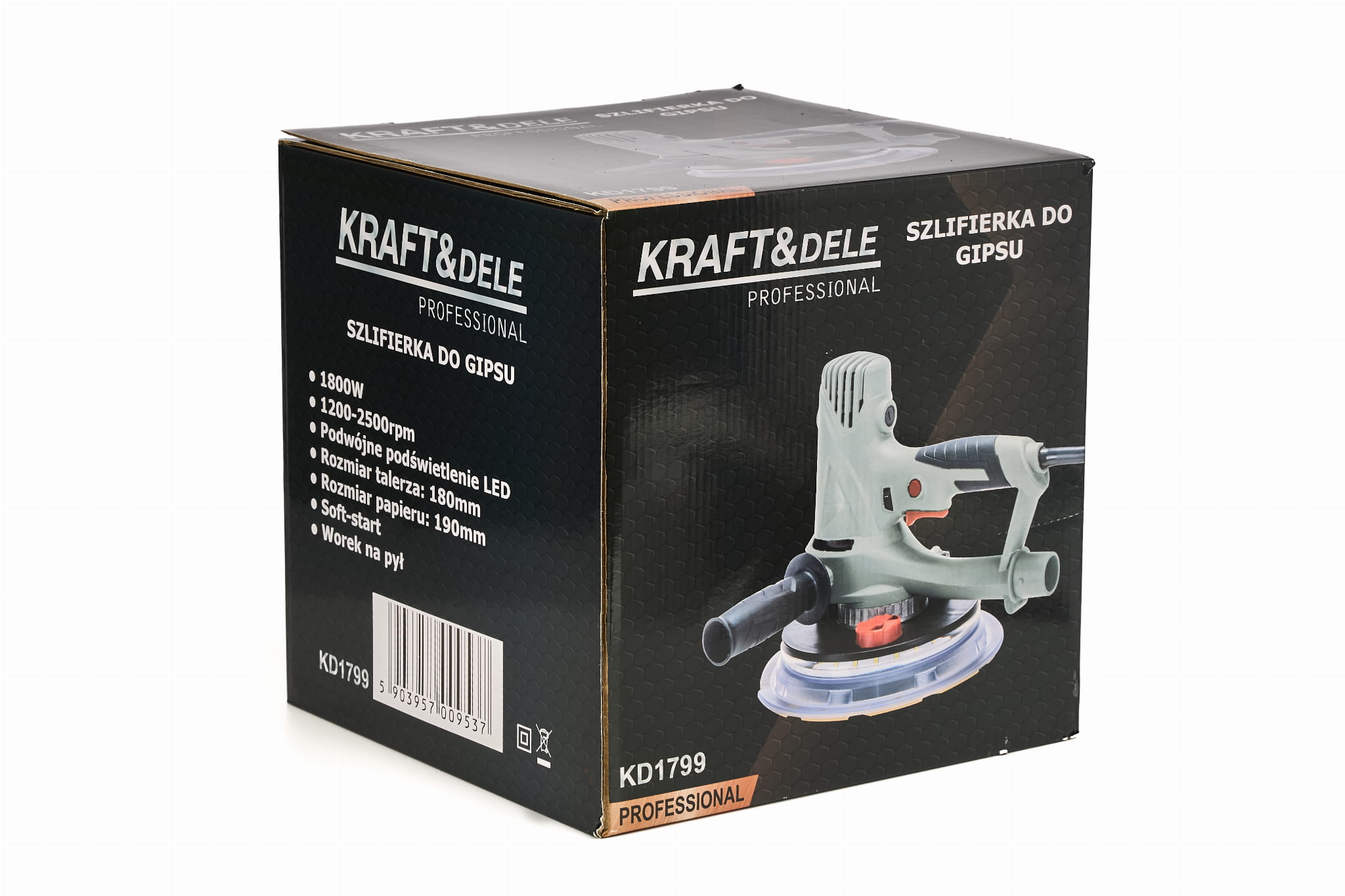 Profesjonalna szlifierka marki Kraft&Dele model KD1799 przeznaczona jest do szlifowania tynków i gładzi gipsowej. Model ten został wyposażony w wydajny silnik o mocy 1800W.