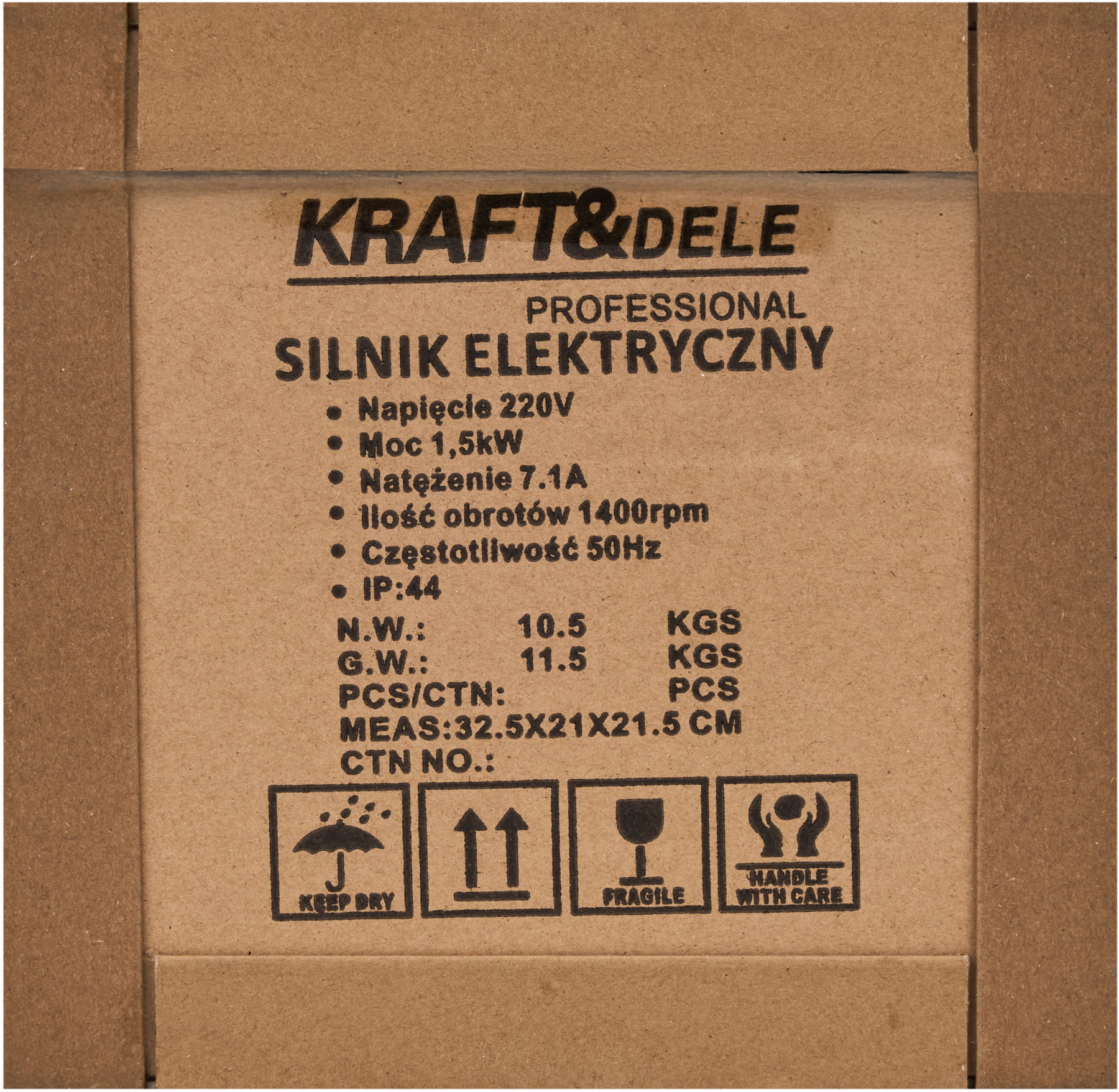 silnik elektryczny 1,5kW; silnik 1400rpm; silnik jednofazowy 220V; silnik do kompresora; silnik do pompy; silnik przemysłowy; Kraft&Dele KD1801;