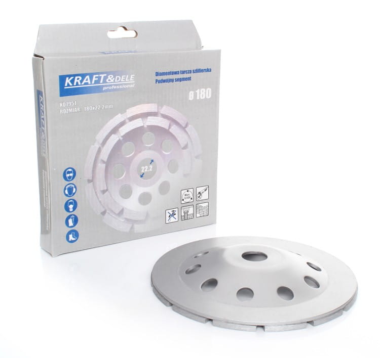 Tarcza szlifierska KD1951 z podwójnym segmentem znajdzie zastosowanie w szlifowaniu różnego rodzaju powierzchni wykonanych z materiałów ceramicznych, wylewek betonowych, kamienia naturalnego lub sztucznego, betonu, kostki brukowej, klinkieru, cegły, gazobetonu, itp.