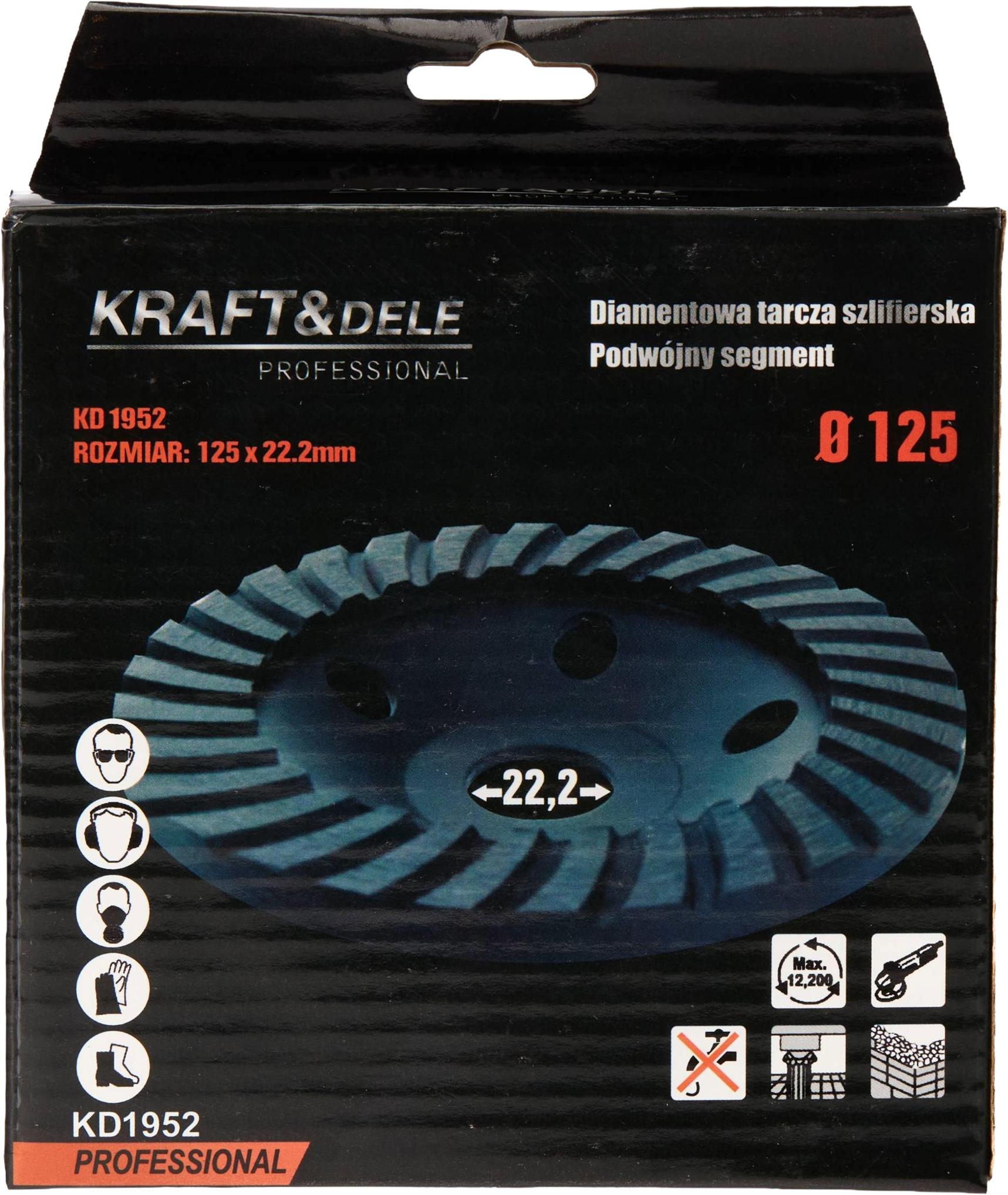 Diamentowa tarcza szlifierska KD1952 marki KRAFT&DELE przeznaczona jest do intensywnego szlifowania oraz wyrównywania powierzchni betonowych i mineralnych. Dzięki solidnej konstrukcji oraz segmentowi typu TURBO umożliwia skuteczne usuwanie nierówności, zanieczyszczeń oraz nadlewek z różnego rodzaju podłoży.