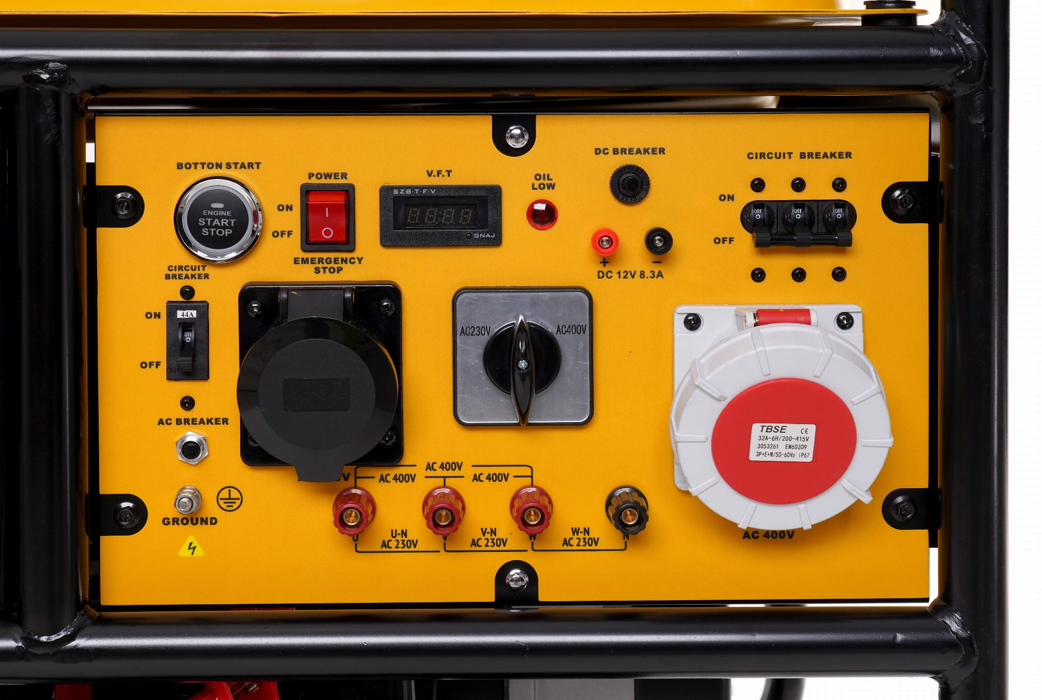 | Cechy: • Moc: 13 kW (220V-230V) / 15 kW (400V) • Paliwo: Benzyna bezołowiowa 95 lub 98 • Pojemność zbiornika paliwa: 48,5L • Waga: Około 160kg • Typ: Trójfazowy • System rozruchu: Elektryczny rozrusznik • Model silnika: 2V80 OHV (4-suwowy), 739,3cc • Częstotliwość: 50Hz • Czas pracy na pełnym zbiorniku: 6,5 godziny • Czas pracy przy 1/2 maksymalnym obciążeniu: 13 godzin • Poziom hałasu: 82 dB • Rozmiar: 825x656x817mm | Skład zestawu • Agregat prądotwórczy trójfazowy KD196 • Klucze do świec, śrubokręt • Kable do ładowania akumulatorów 12V • Wtyczka 230V / 400V • Instrukcja obsługi w j. polskim • Oryginalne opakowanie • Paragon lub FV. |