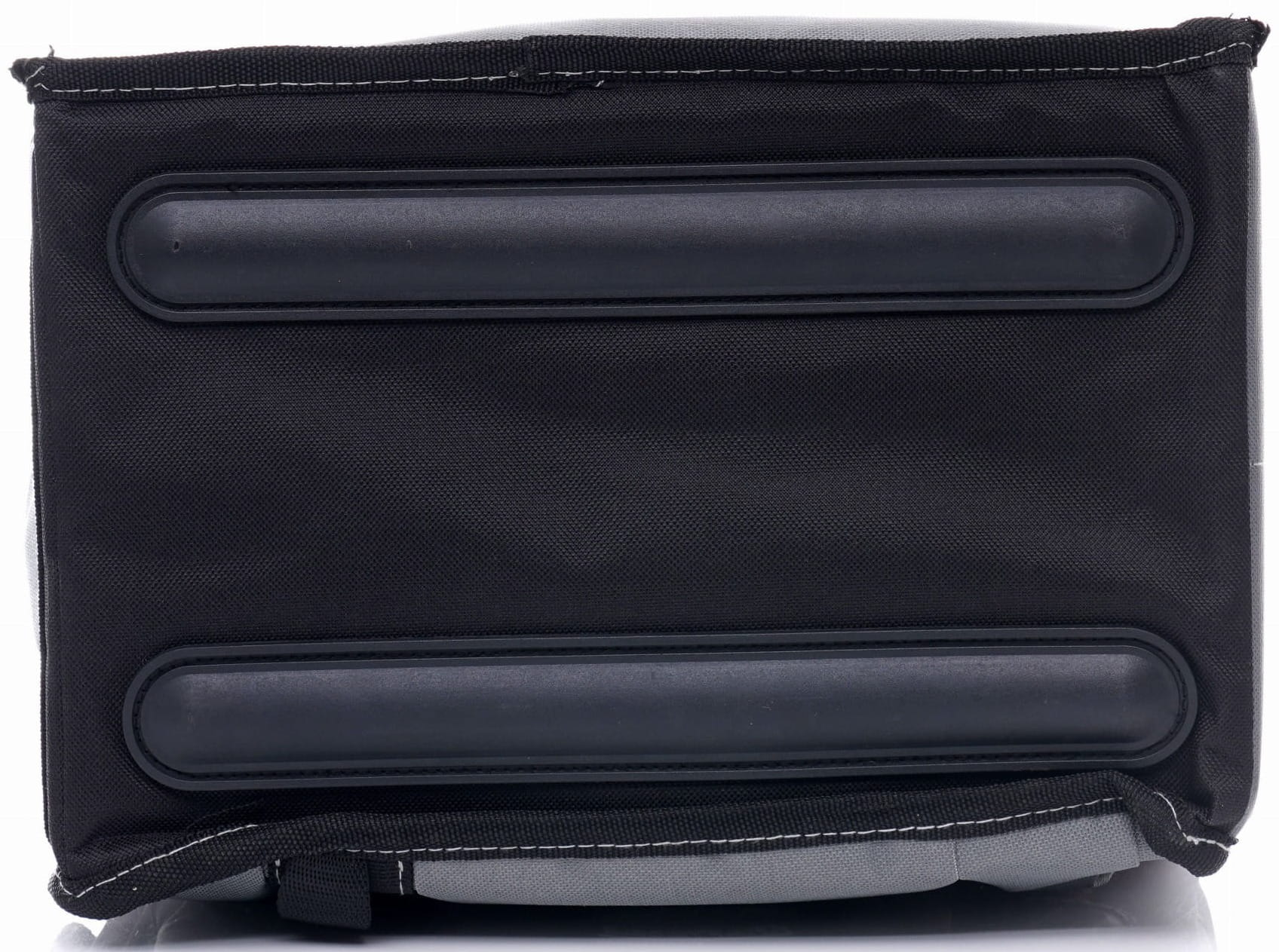Torba wykonana została z grubego, wytrzymałego materiału, a solidne szwy oraz metalowe nity w miejscach szczególnie narażonych na uszkodzenia zapewniają długą żywotność produktu. Wyposażenie w metalową rączkę z piankowym chwytem zwiększa komfort przenoszenia i pewność użytkowania.