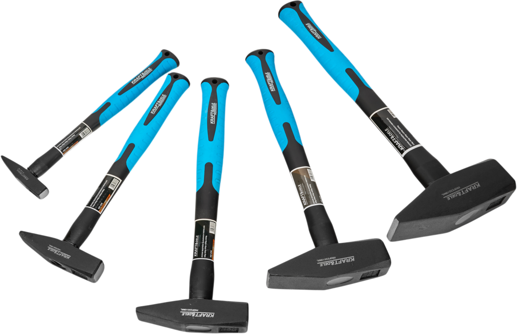 zestaw młotków; młotki fiberglass; młotek warsztatowy; młotek budowlany; zestaw młotków 5 szt; młotki KRAFT&DELE; KD230; Młotek 2000g, Młotek 1000g; Młotek 500g; Młotek 300g; Młotek 100g;