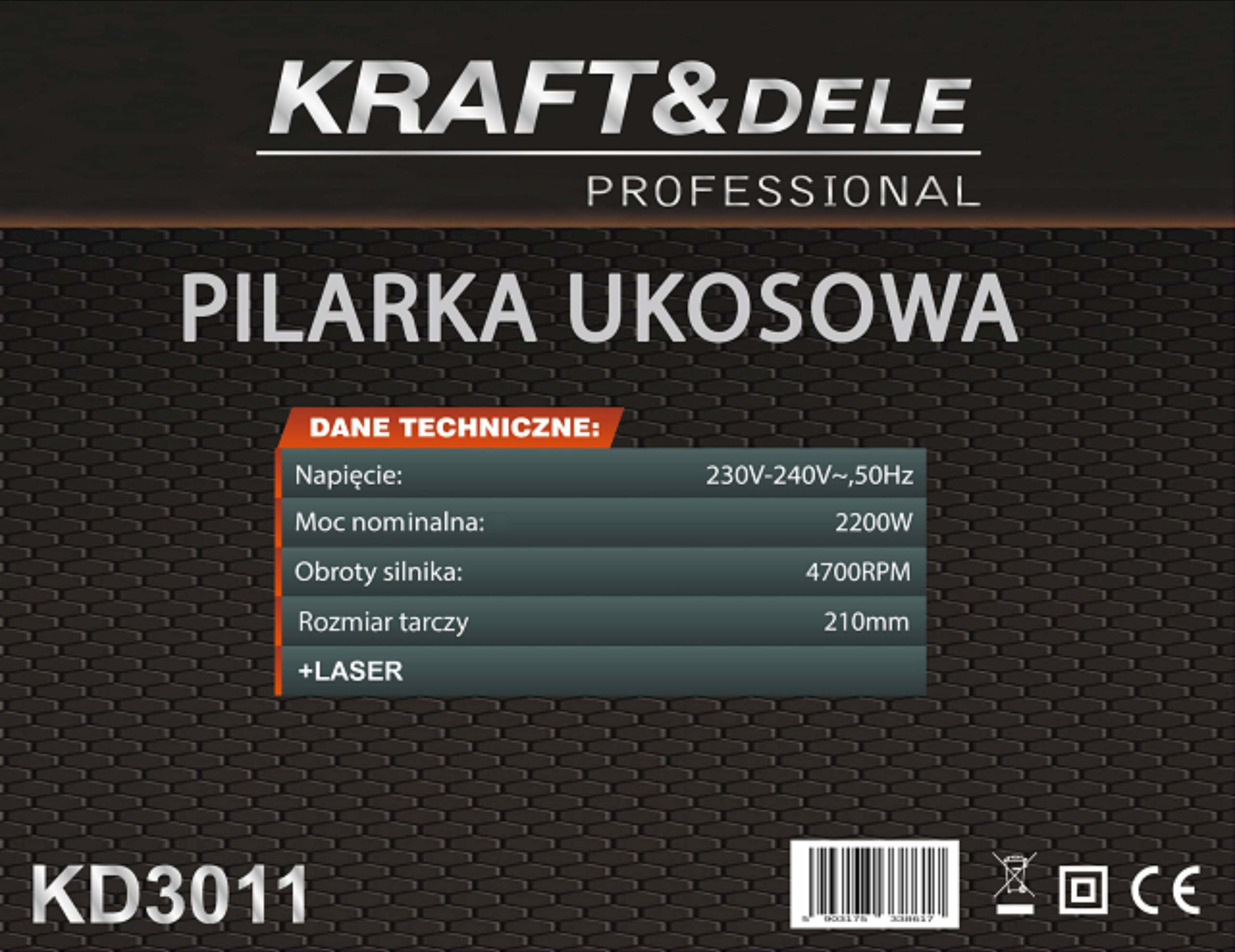 Model KD3011 wyposażono w mocny silnik o mocy 2200W, który generuje prędkość obrotową 4700 obr/min, co zapewnia szybkie, czyste i dokładne cięcia. Wbudowany laser ułatwia prowadzenie linii cięcia, zwiększając precyzję pracy. Solidna podstawa, prowadnice oraz możliwość ustawiania kąta cięcia sprawiają, że urządzenie jest niezwykle funkcjonalne i komfortowe w użytkowaniu. Ergonomiczny uchwyt zapewnia pewny chwyt i wygodne prowadzenie pilarki, a osłona tarczy zwiększa bezpieczeństwo podczas pracy. Dodatkowo zastosowany worek na pył pomaga utrzymać porządek w miejscu pracy.