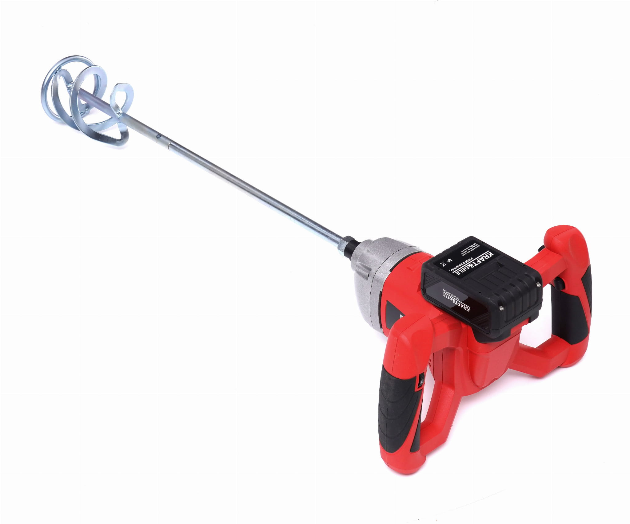 Mieszadło akumulatorowe jest idealne do mieszania farb, klejów, gipsu, zapraw tynkarskich, zapraw wapiennych, cementowych, żywic epoksydowych, niepalnych chemikaliów itp. Jeżeli planuje się remont lub prace budowlane mieszadło stanowi obowiązkowe wyposażenie .Montaż mieszalnika odbywa się za pomocą mocnego gwintu o standardowym wymiarze M14, dzięki czemu szybka wymiana to prosty i szybki zabieg w tej maszynie a dokupienie mieszalników nie sprawia kłopotu gdyż jest to popularny i niedrogi system mocowania mieszalników.
