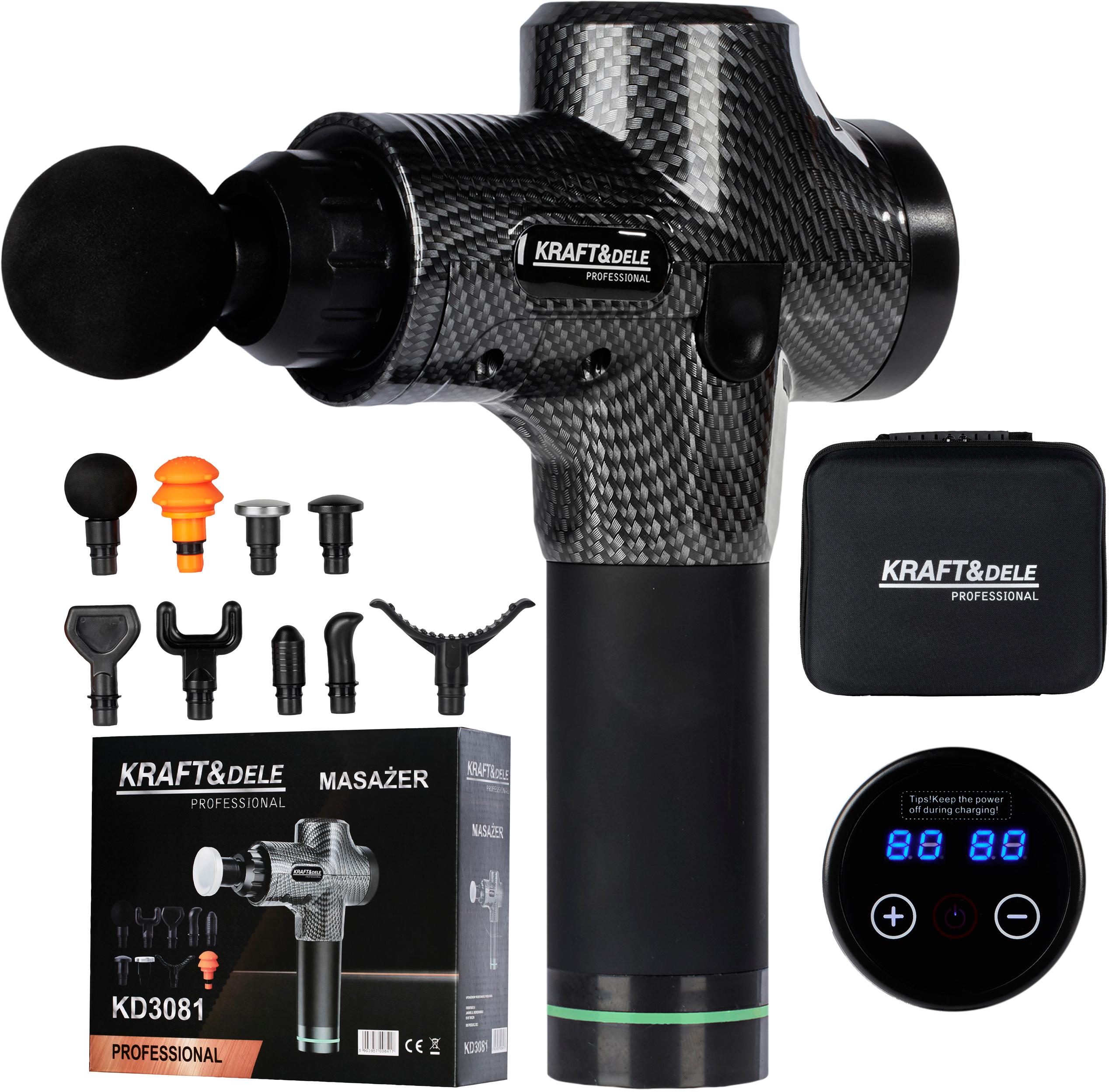 Model KD3081 wyposażony jest w czytelny ekran dotykowy LCD, który ułatwia sterowanie pracą urządzenia i wybór odpowiedniego poziomu intensywności. Masażer posiada 30 różnych prędkości, co pozwala dopasować wibracje do indywidualnych potrzeb. Bezprzewodowa konstrukcja, lekka forma oraz 9 wymiennych końcówek sprawiają, że urządzenie jest wygodne w użytkowaniu i sprawdza się do masażu różnych partii ciała.