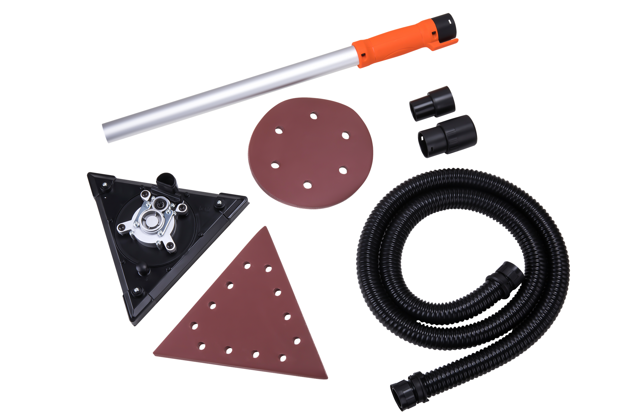 Poza urządzeniem w zestawie znajduje się także sześć arkuszy papieru ściernego przeznaczonego do każdej z głowic. Urządzenie jest wyposażone w wąż, który można zamocować w odkurzaczu – idealne rozwiązanie, aby utrzymać miejsce pracy w czystości!