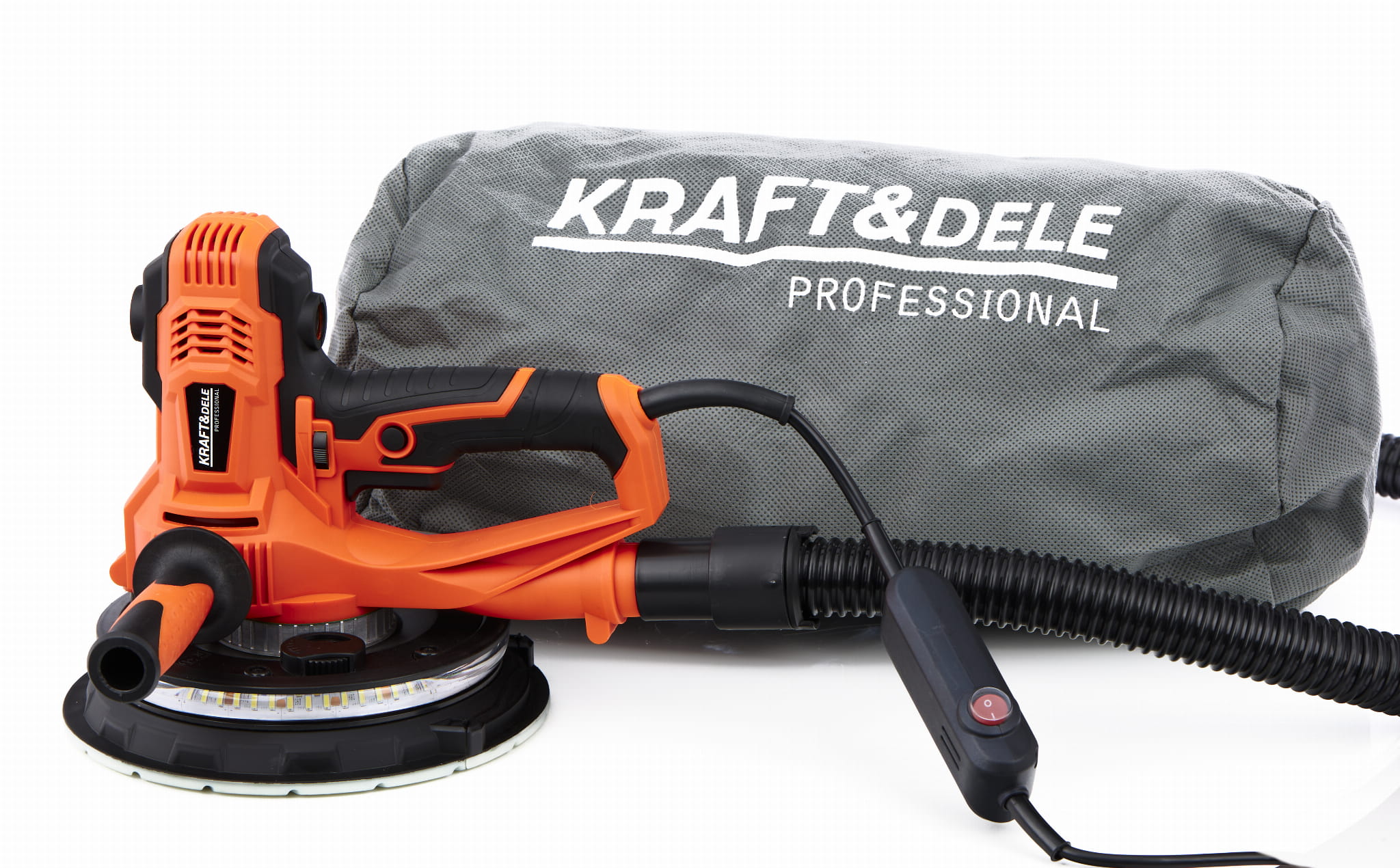 Szlifierka ż marki KraftDele model KD3132 ułatwia szlifowanie wszystkich ścian i sufitów. Model jest wyposażony w oświetlenie LED, dlatego możesz pracować w różnych warunkach