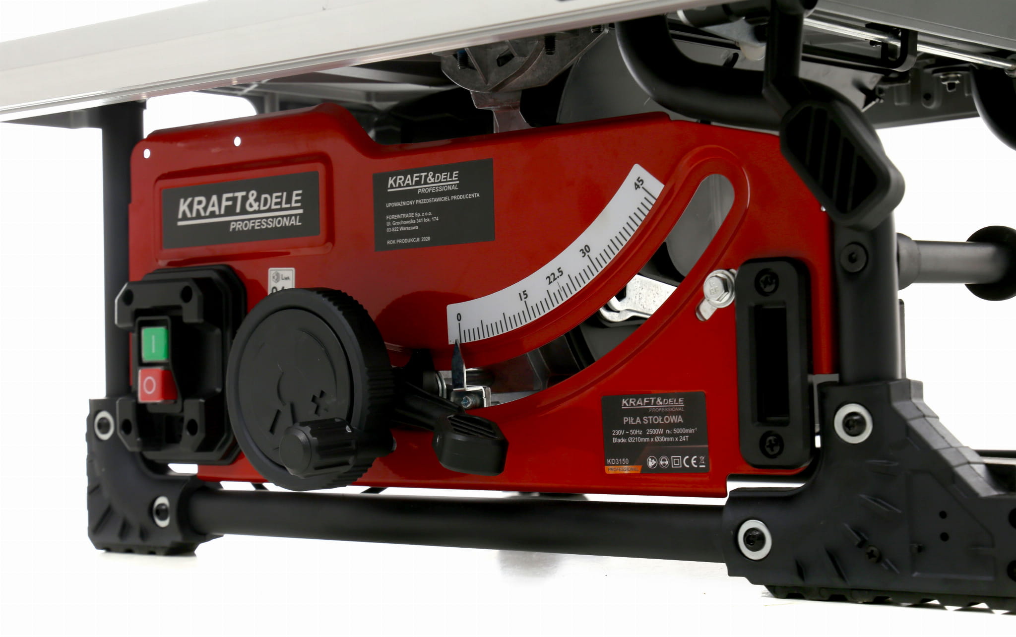 Piła stołowa KD3150 polskiej marki Kraft&Dele przeznaczona do wszelkiego typu drewna i materiałów drewnopochodnych (sklejka, płyta wiórowa) oraz tworzyw sztucznych. System odprowadzania trocin ogranicza rozprzestrzenianie się urobku.