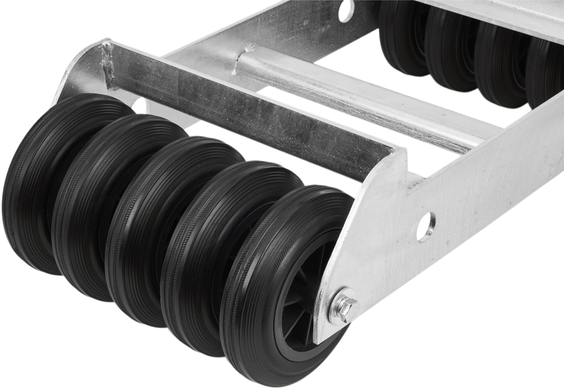 Model KD3200 sprawdzi się również w użytku prywatnym – ułatwia manewrowanie pojazdem w garażu, warsztacie lub podczas wciągania auta na lawetę. Wzmocniona konstrukcja z blachy o grubości 6 mm zapewnia wysoką nośność statyczną do 1200 kg, a cynkowanie ogniowe skutecznie chroni ramę przed korozją nawet przy intensywnym użytkowaniu. Zastosowanie aż 10 kół gumowo-poliamidowych gwarantuje płynny ruch, stabilność oraz równomierne rozłożenie obciążenia. Wałek oparty bezpośrednio na ramie zapobiega przechylaniu wózka na boki, zwiększając bezpieczeństwo pracy.