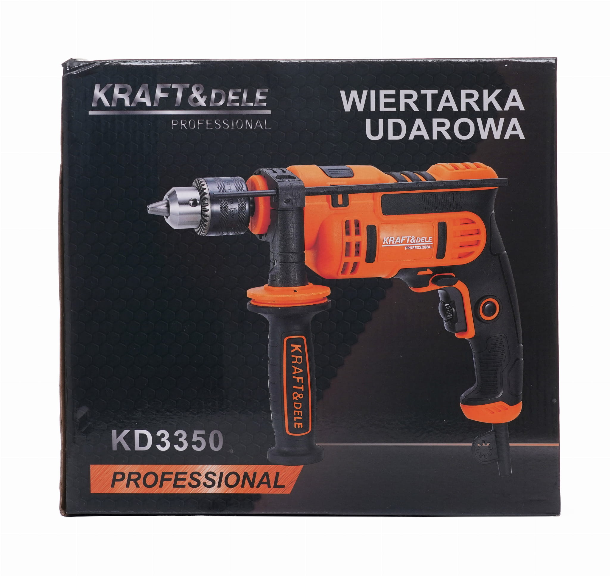 Elektryczna wiertarka udarowa Kraft&Dele KD3350 o mocy 1600W przeznaczona do wiercenia udarowego w murze, betonie i kamieniu oraz do wiercenia w metalu, ceramice, drewnie i tworzywie sztucznym. Główna rękojeść została wykonana ze specjalnego antypoślizgowego materiału ułatwiającego trzymanie urządzenia w dłoni. Jest to wesja wyposażona w dodatkwą rękojeść boczną.Głowica wykonana z metalu.