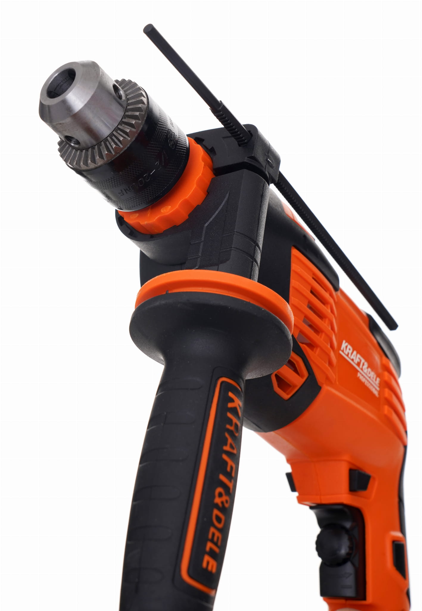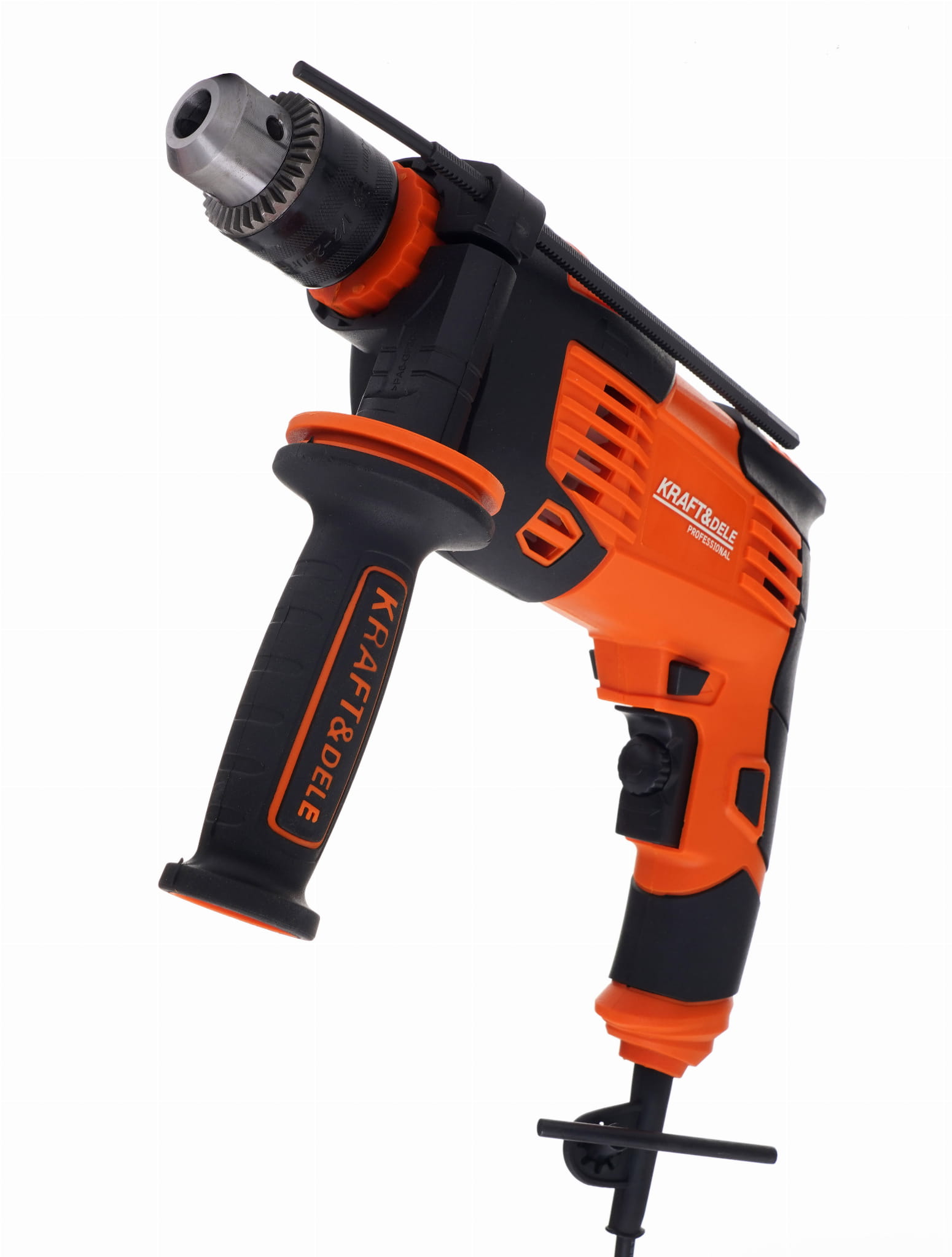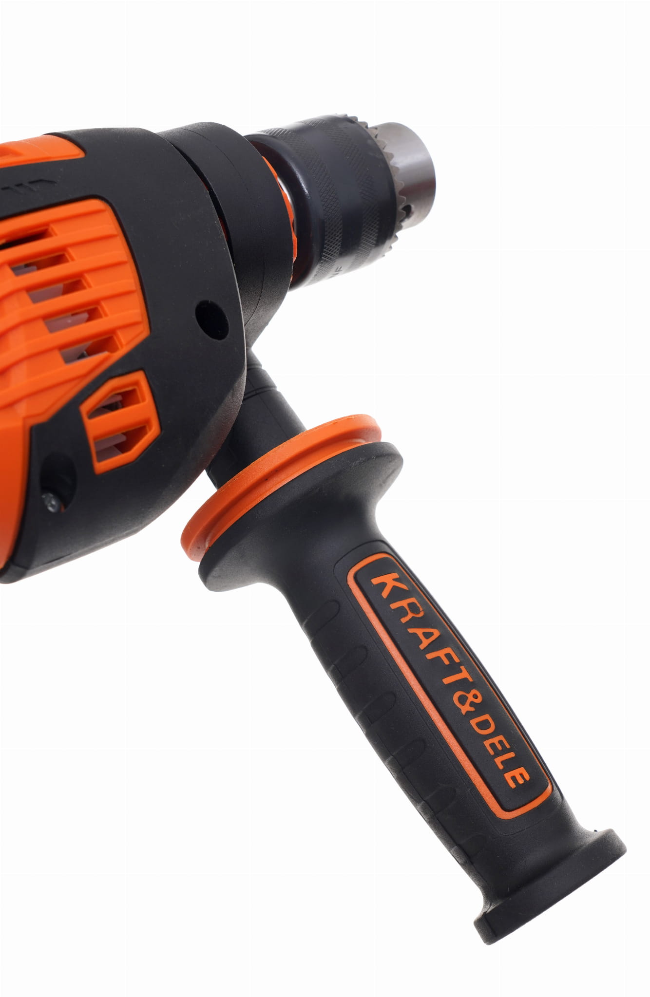 Elektryczna wiertarka udarowa Kraft&Dele KD3352 o mocy 1600W przeznaczona do wiercenia udarowego w murze, betonie i kamieniu oraz do wiercenia w metalu, ceramice, drewnie i tworzywie sztucznym. Główna rękojeść została wykonana ze specjalnego antypoślizgowego materiału ułatwiającego trzymanie urządzenia w dłoni. Jest to wesja wyposażona w dodatkwą rękojeść boczną.Głowica wykonana z metalu.