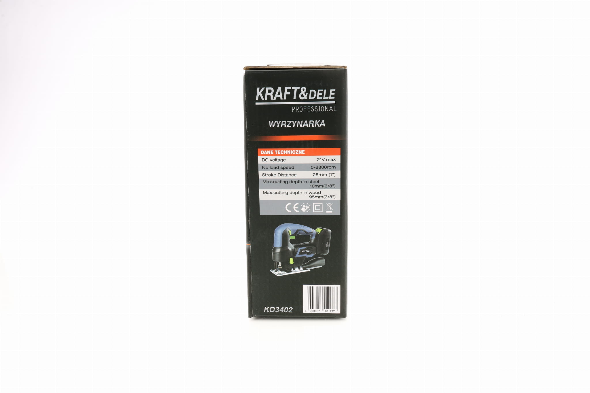 Profesjonalna wyrzynarka akumulatorowa marki Kraft&Dele model KD3402 to urządzenie które dzięki swojej niewielkiej wadze oraz zasilaniu akumulatorowym zapewnia niezwykły komfort pracy. Służy do precyzyjnego cięcia w linii prostej i krzywej. Wykonamy nią cięcie na różną głębokość w drewnie, ale także w  aluminium, panelach, parkietach, płytach wiórowych i różnego rodzaju tworzywach sztucznych.