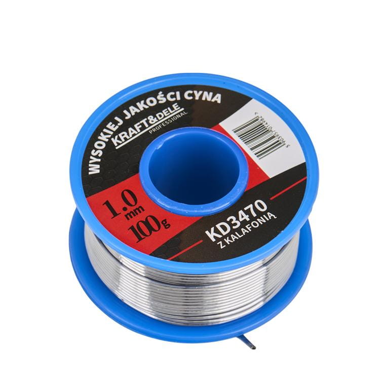 Wysokiej jakości cyna lutownicza z dodatkiem kalafonii, idealna do szybkiego i efektywnego lutowania w elektronice, elektrotechnice oraz drobnych naprawach domowych.