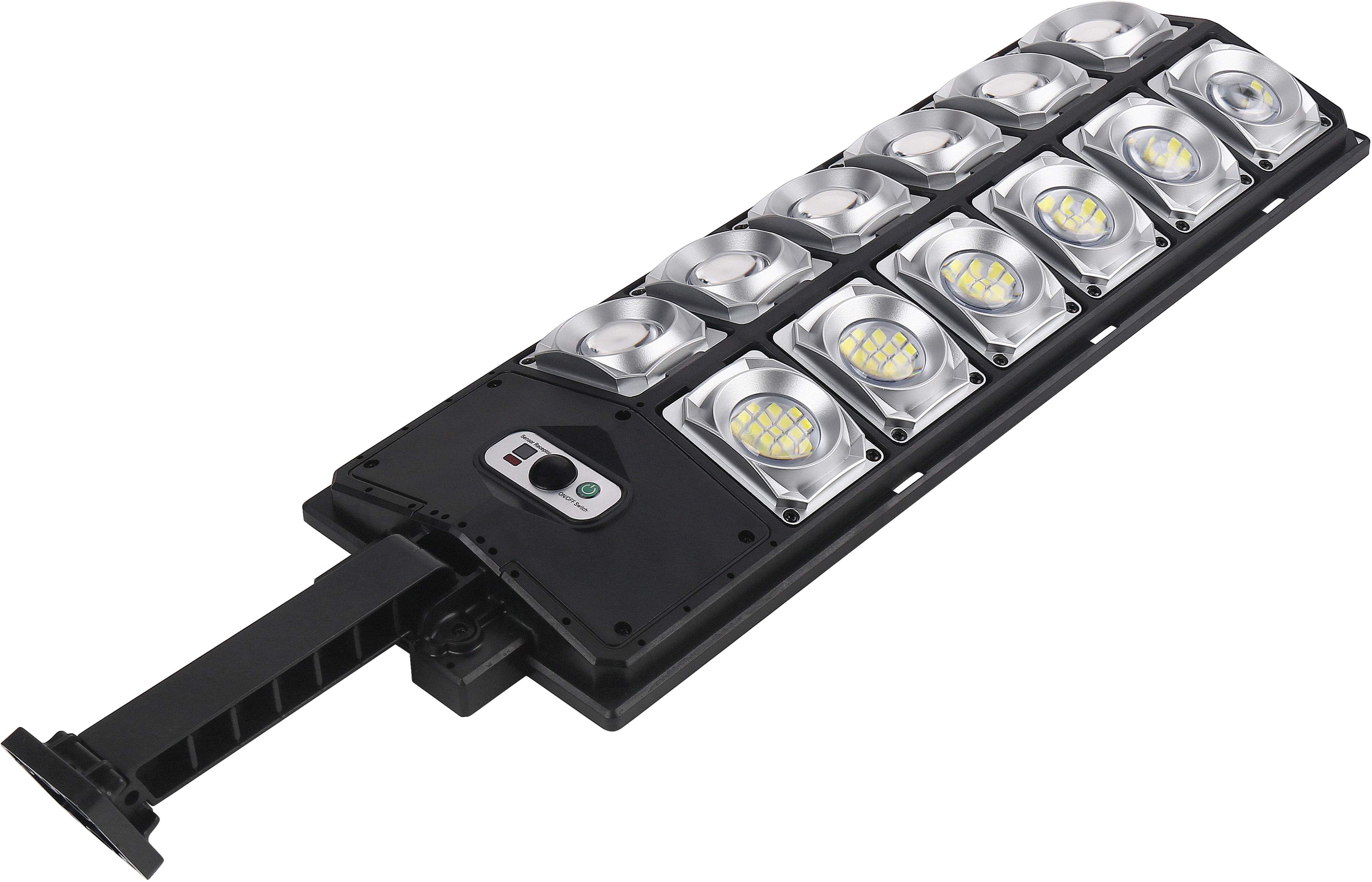 Lampa została wyposażona w wydajny panel solarny oraz pojemną baterię, które zapewniają długą i stabilną pracę po pełnym naładowaniu. Zastosowanie wielu modułów LED gwarantuje intensywne i równomierne oświetlenie dużej powierzchni, zwiększając komfort oraz bezpieczeństwo po zmroku.