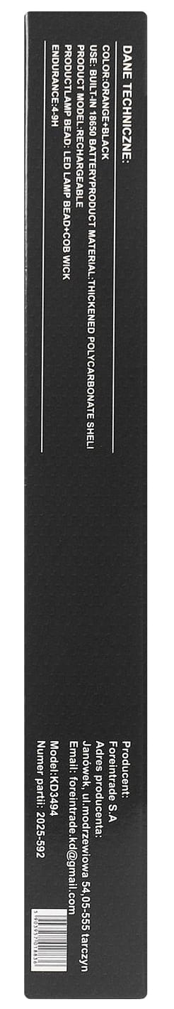 Model KD3494 został wyposażony w regulowany stojak z magnesem oraz haczyk, co umożliwia wygodne ustawienie lub zawieszenie lampki w dowolnym miejscu. Dzięki temu można łatwo dopasować kierunek światła do aktualnych potrzeb, nawet w trudno dostępnych przestrzeniach.