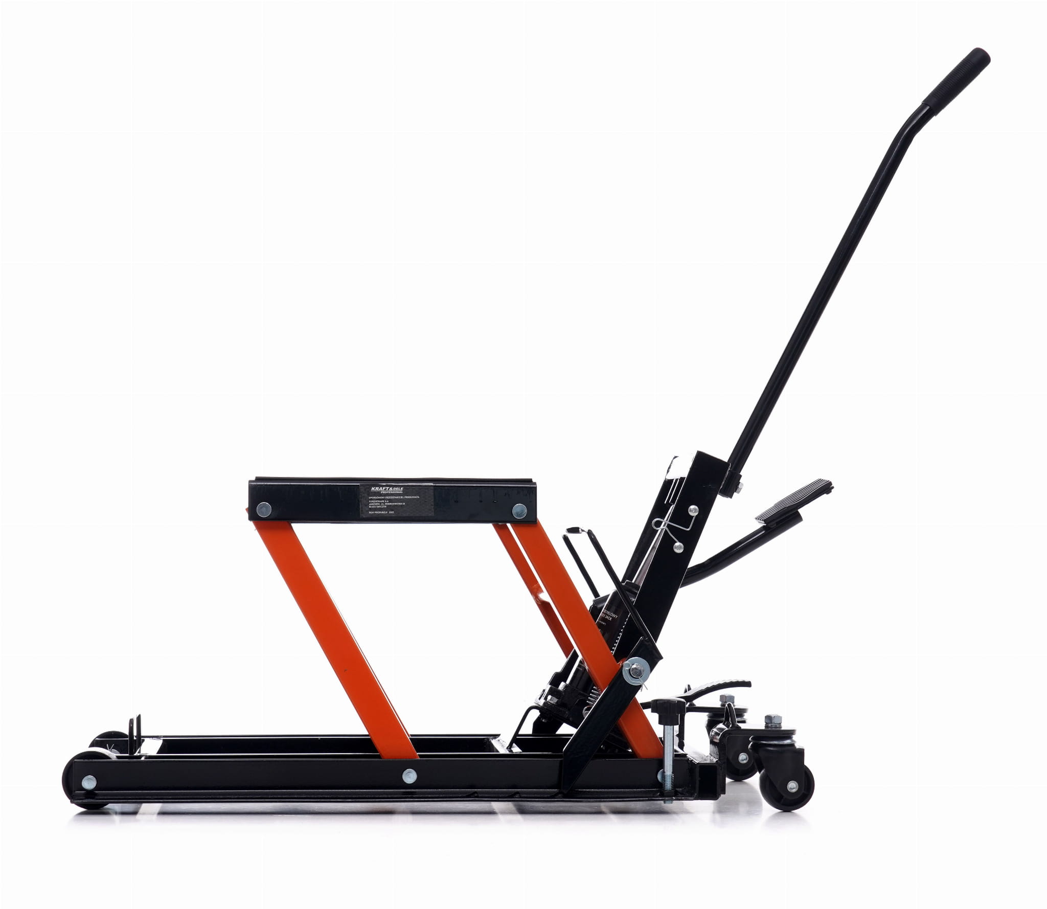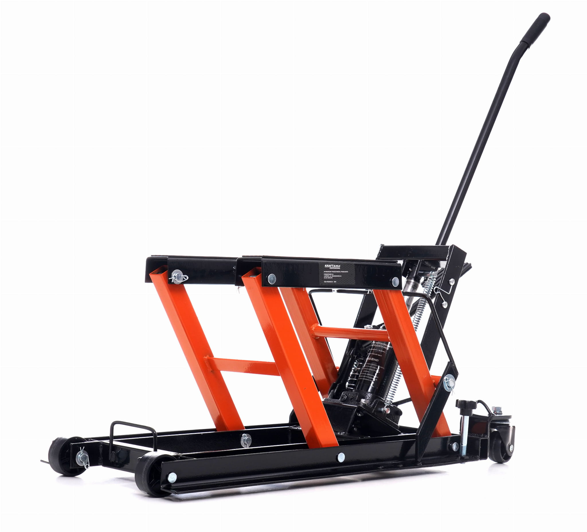 Profesjonalny podnośnik hydrauliczny marki Kraft&Dele model KD353 posiada wzmocnioną konstrukcję, dzięki czemu bez problemu podniesiemy motocykl, quad itp.