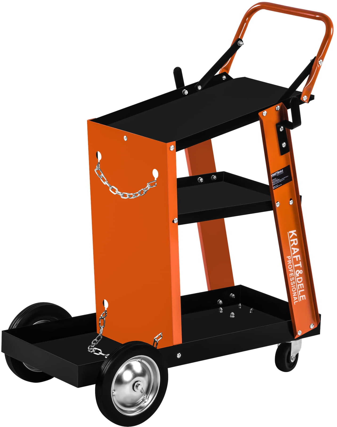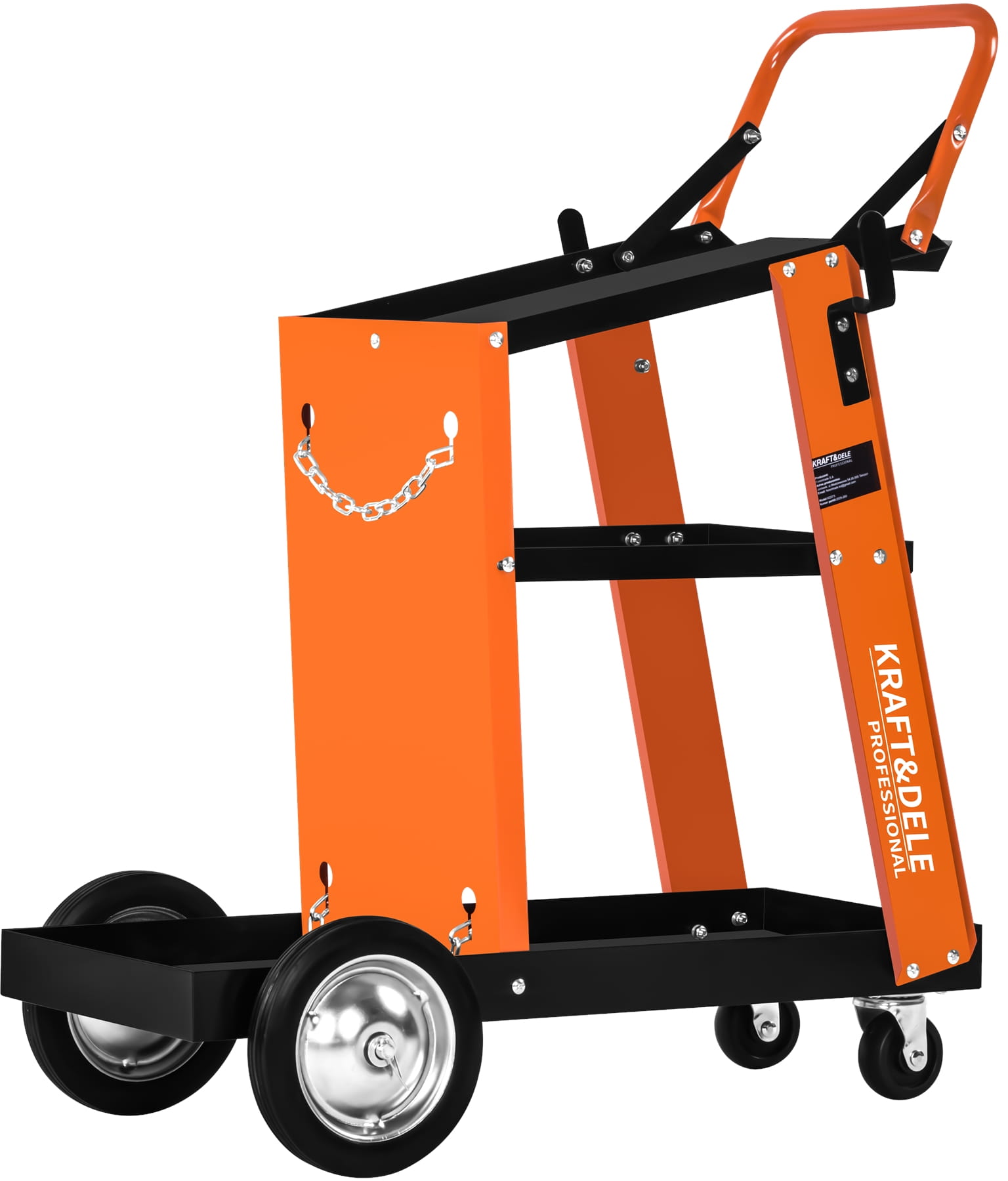 KD373 to profesjonalny wózek spawalniczy marki KRAFT&DELE przeznaczony do wygodnego transportu oraz przechowywania urządzeń spawalniczych i akcesoriów warsztatowych. Doskonale sprawdzi się podczas pracy ze spawarkami MIG, TIG, plazmowymi oraz innym sprzętem używanym w warsztatach i serwisach.