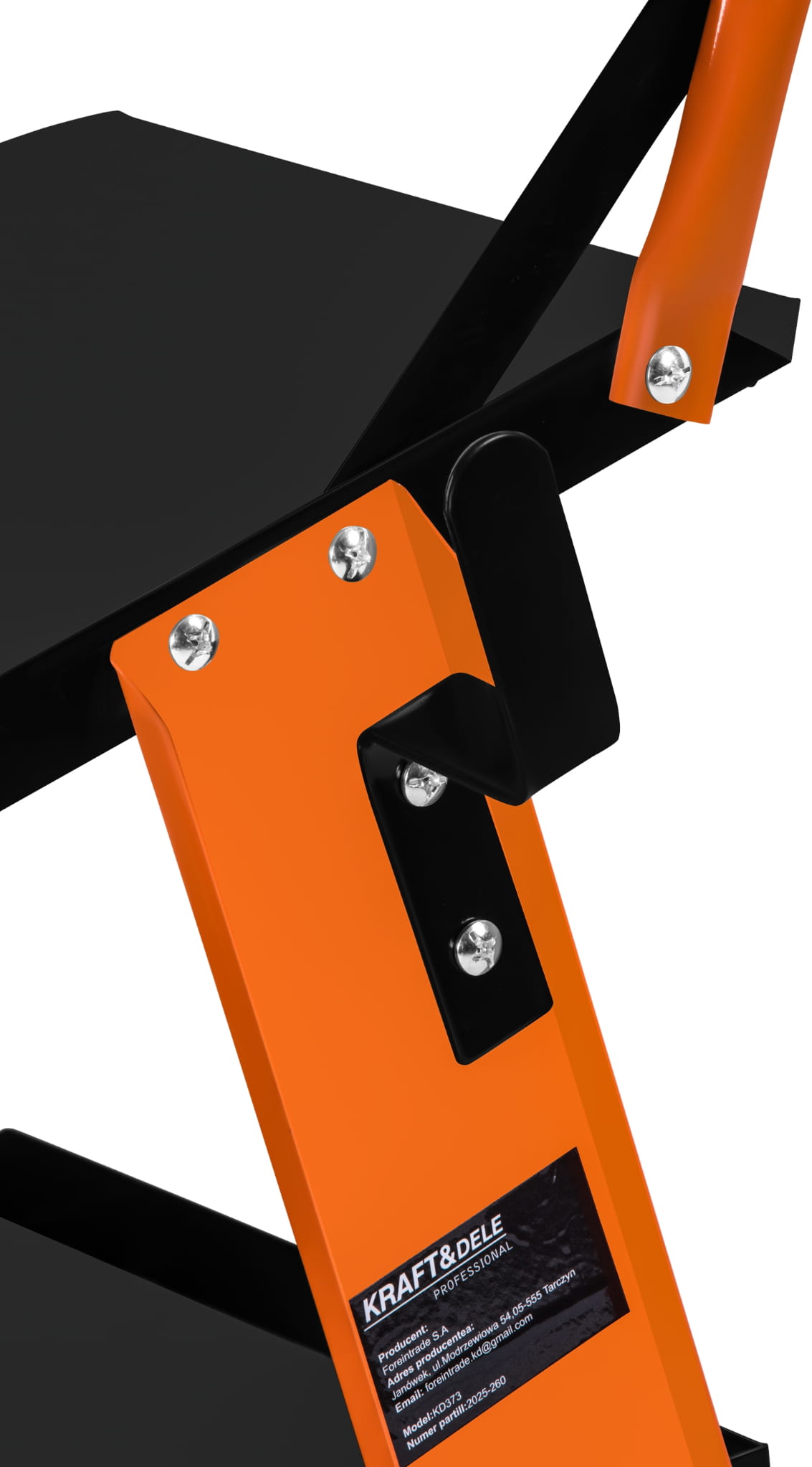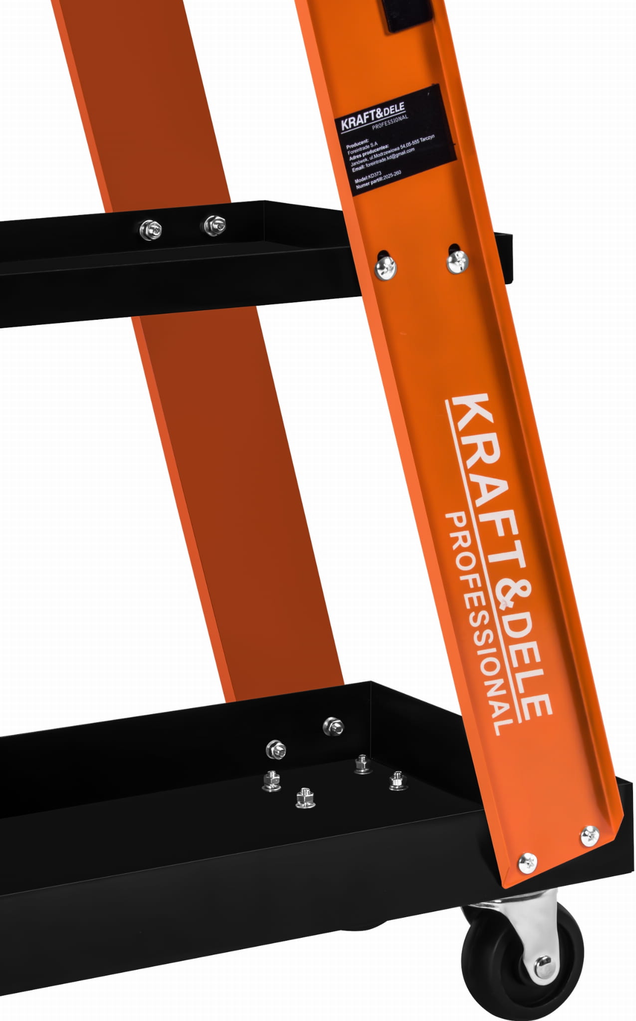 Model KD373 wyposażony został w wydłużoną górną półkę oraz dwie dodatkowe półki umożliwiające wygodne rozmieszczenie narzędzi, przewodów i akcesoriów spawalniczych. Solidna konstrukcja wykonana z wytrzymałej stali zapewnia stabilność oraz nośność do 75 kg. Duże tylne koła oraz mniejsze przednie kółka umożliwiają łatwe manewrowanie wózkiem nawet przy większym obciążeniu, dzięki czemu sprzęt można wygodnie przemieszczać w obrębie warsztatu. Ergonomiczny uchwyt transportowy zapewnia pewny chwyt i maksymalną wygodę podczas manewrowania wózkiem w przestrzeni roboczej.
