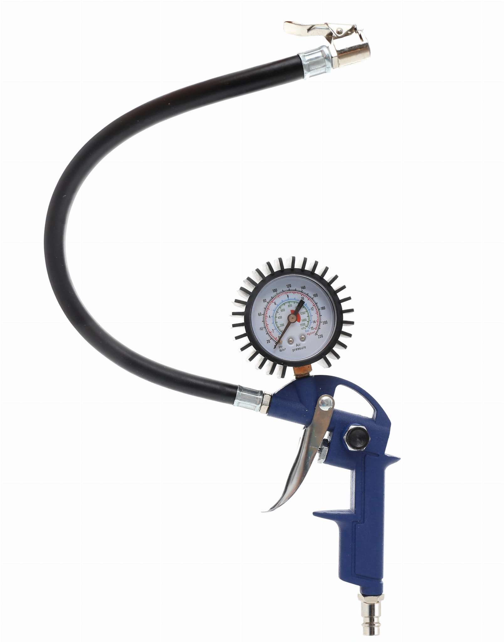 ✅ Pistolet do pompowania z manometrem – doskonały do pompowania i kontroli ciśnienia ogumienia pneumatycznego. Posiada gumową obudowę zegara i zawór spustowy powietrza.