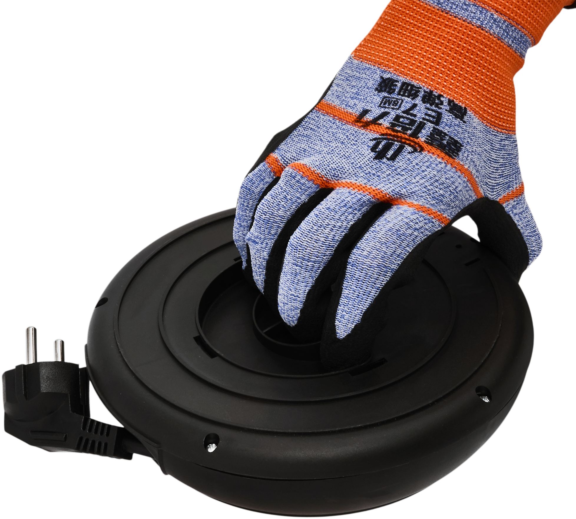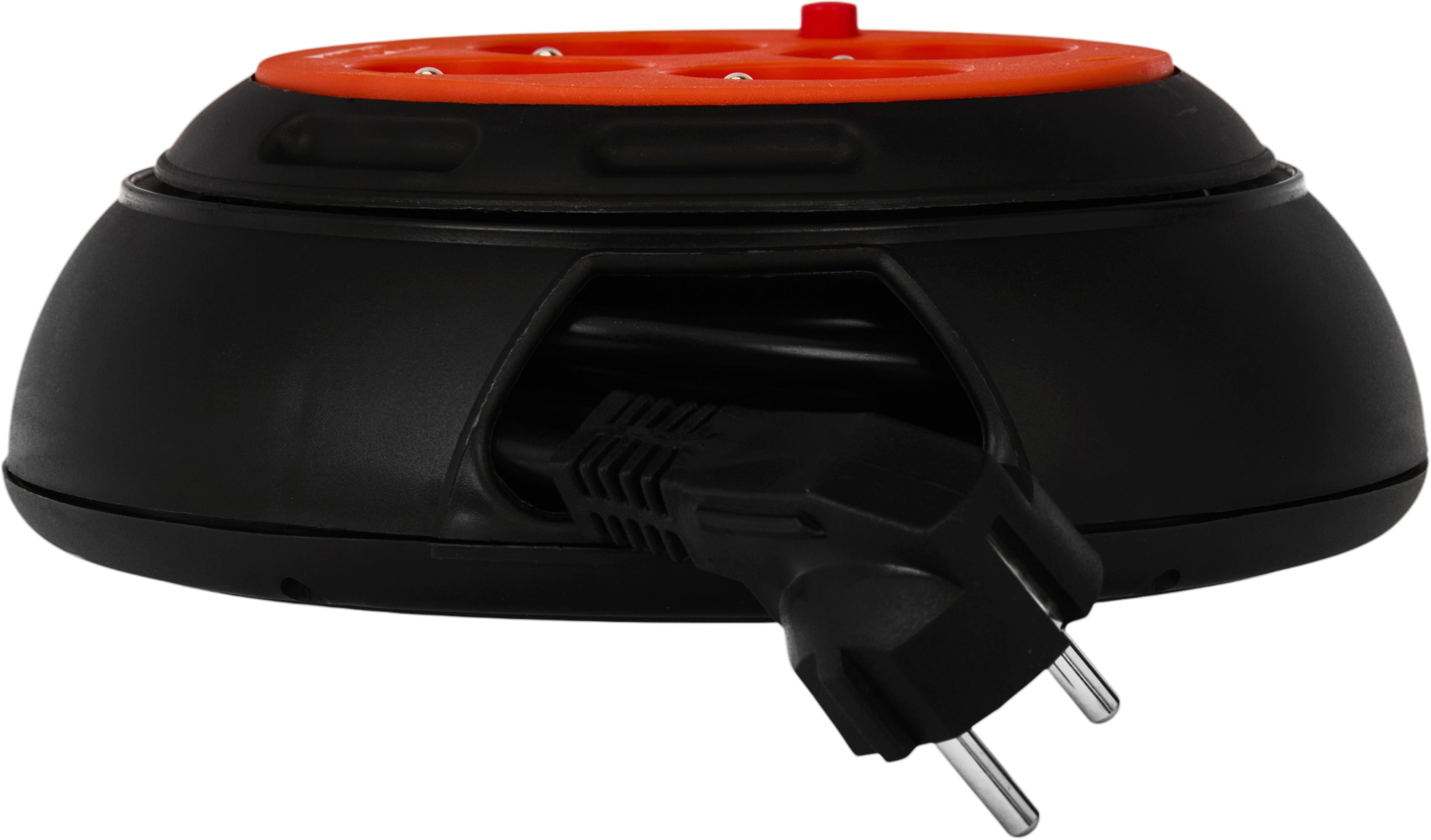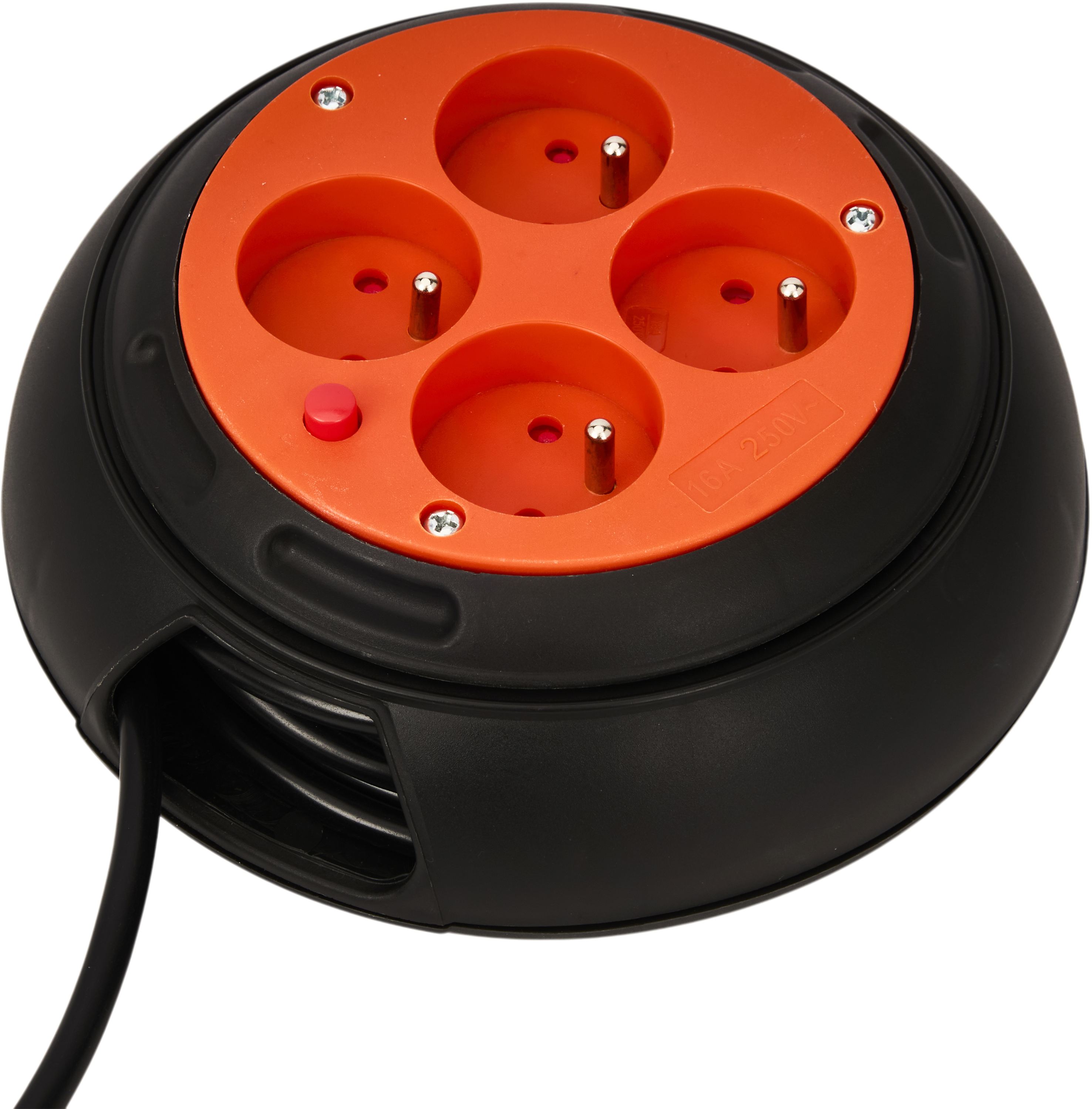 Wyposażony w 4 gniazda z uziemieniem umożliwia jednoczesne podłączenie kilku urządzeń. Solidna obudowa oraz wbudowane zabezpieczenie przeciążeniowe zwiększają bezpieczeństwo użytkowania, a ergonomiczny system zwijania pozwala szybko uporządkować przewód po zakończeniu pracy. Dodatkowo na spodzie urządzenia znajduje się praktyczny uchwyt, który ułatwia trzymanie i kontrolę podczas zwijania kabla.