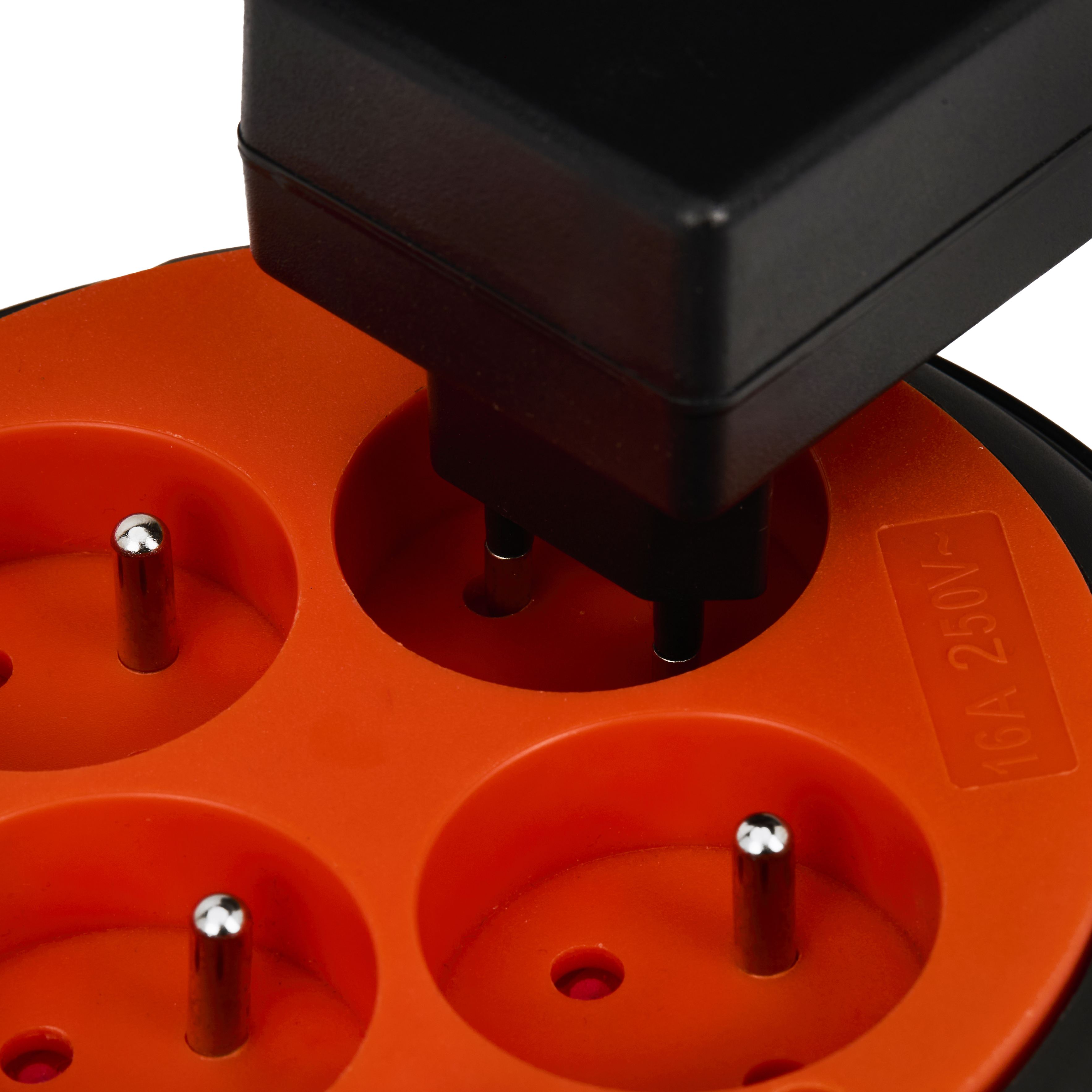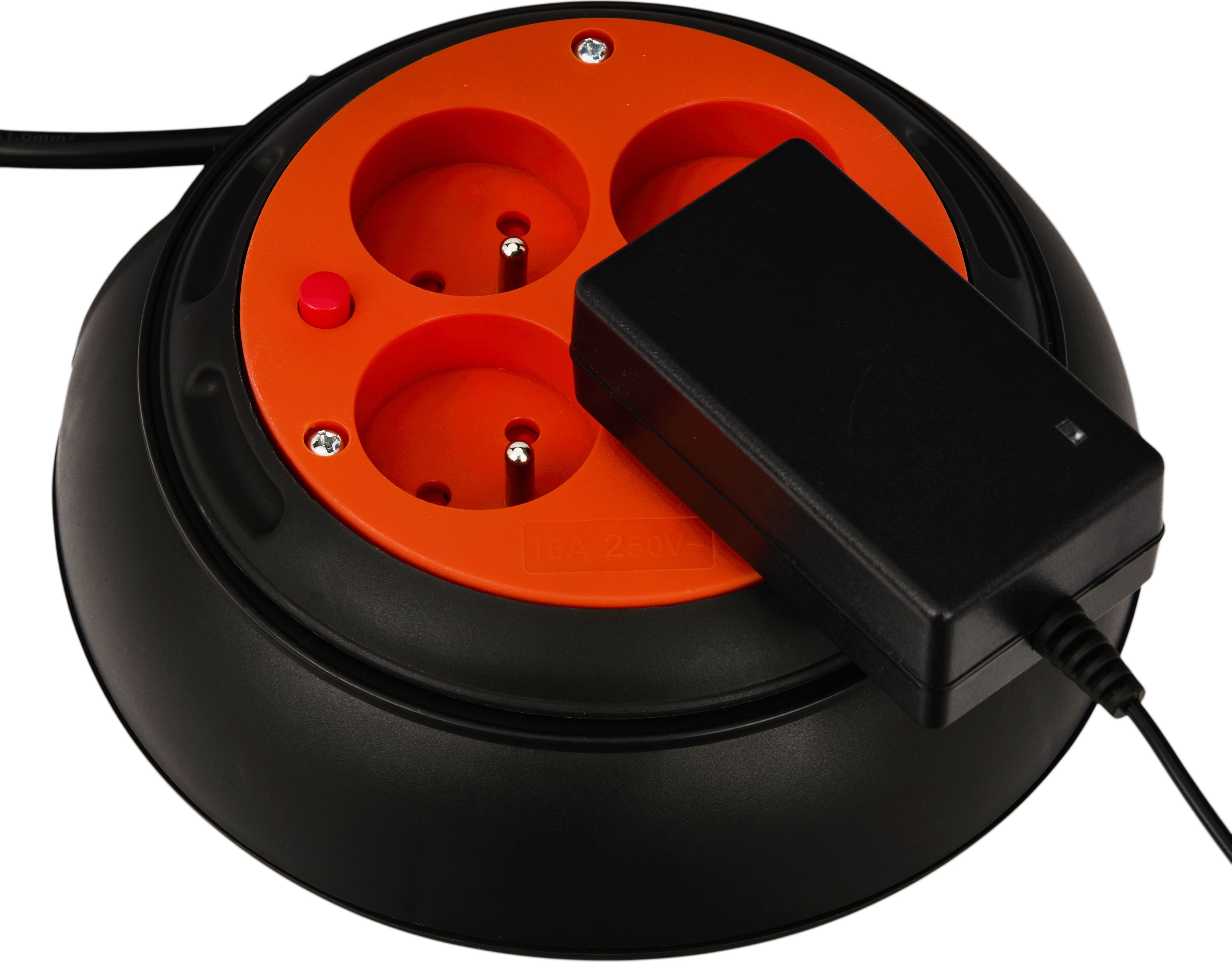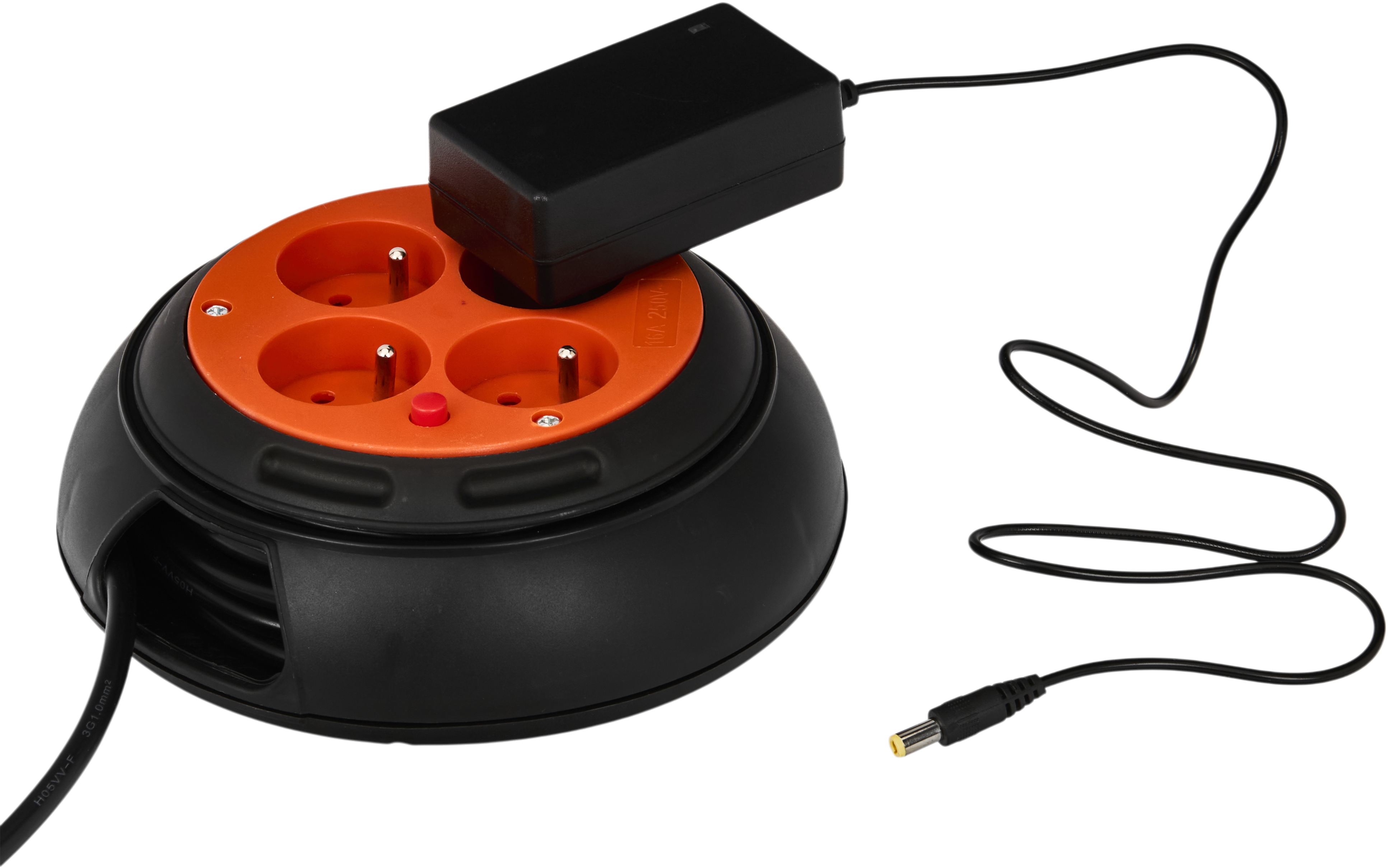 Wyposażony w 4 gniazda z uziemieniem umożliwia jednoczesne podłączenie kilku urządzeń. Solidna obudowa oraz wbudowane zabezpieczenie przeciążeniowe zwiększają bezpieczeństwo użytkowania, a ergonomiczny system zwijania pozwala szybko uporządkować przewód po zakończeniu pracy. Dodatkowo na spodzie urządzenia znajduje się praktyczny uchwyt, który ułatwia trzymanie i kontrolę podczas zwijania kabla.