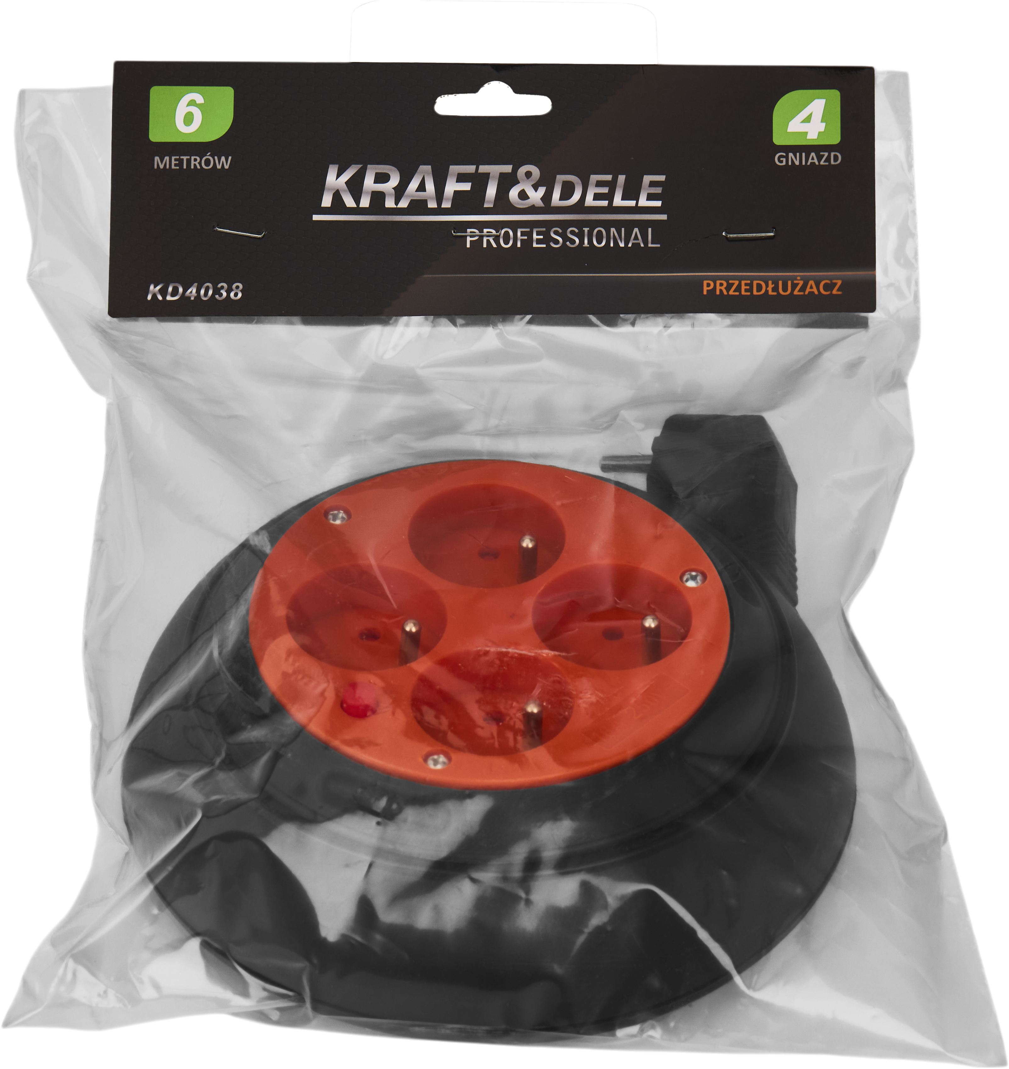 przedłużacz zwijany 6m; przedłużacz bębnowy; kabel zwijany; przedłużacz 4 gniazda; przedłużacz do domu; przedłużacz warsztatowy; kraftdele KD4038;