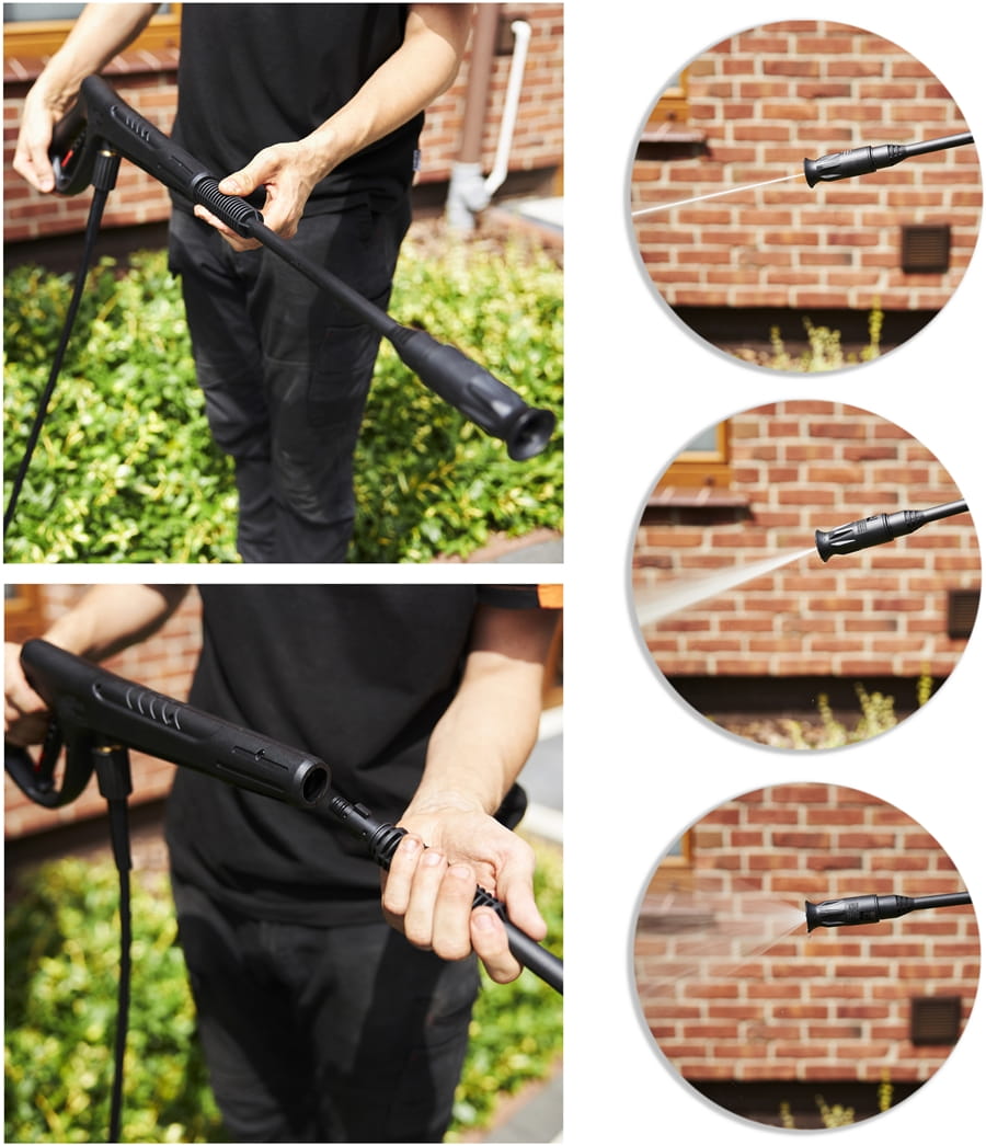 Urządzenie charakteryzuje się lekką i kompaktową konstrukcją, dzięki czemu jest wygodne w użytkowaniu i łatwe w przechowywaniu. Przewód zasilający o długości 5 metrów zapewnia swobodę pracy, a mocny silnik umożliwia długą, efektywną i stabilną pracę. Wysokie ciśnienie robocze pozwala na szybkie, precyzyjne i oszczędne usuwanie nawet trudnych zabrudzeń, skracając czas sprzątania i zwiększając komfort użytkowania.