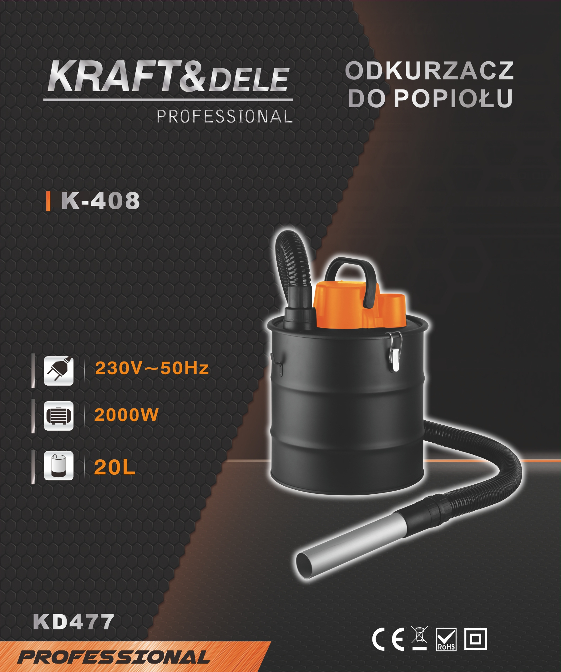 Model KD477 dzięki mocy 2000W skutecznie zasysa nawet drobny popiół, zapewniając dokładne sprzątanie. Pojemny zbiornik o pojemności 20 litrów umożliwia dłuższą pracę bez konieczności częstego opróżniania, a solidna konstrukcja gwarantuje trwałość i niezawodność podczas użytkowania.