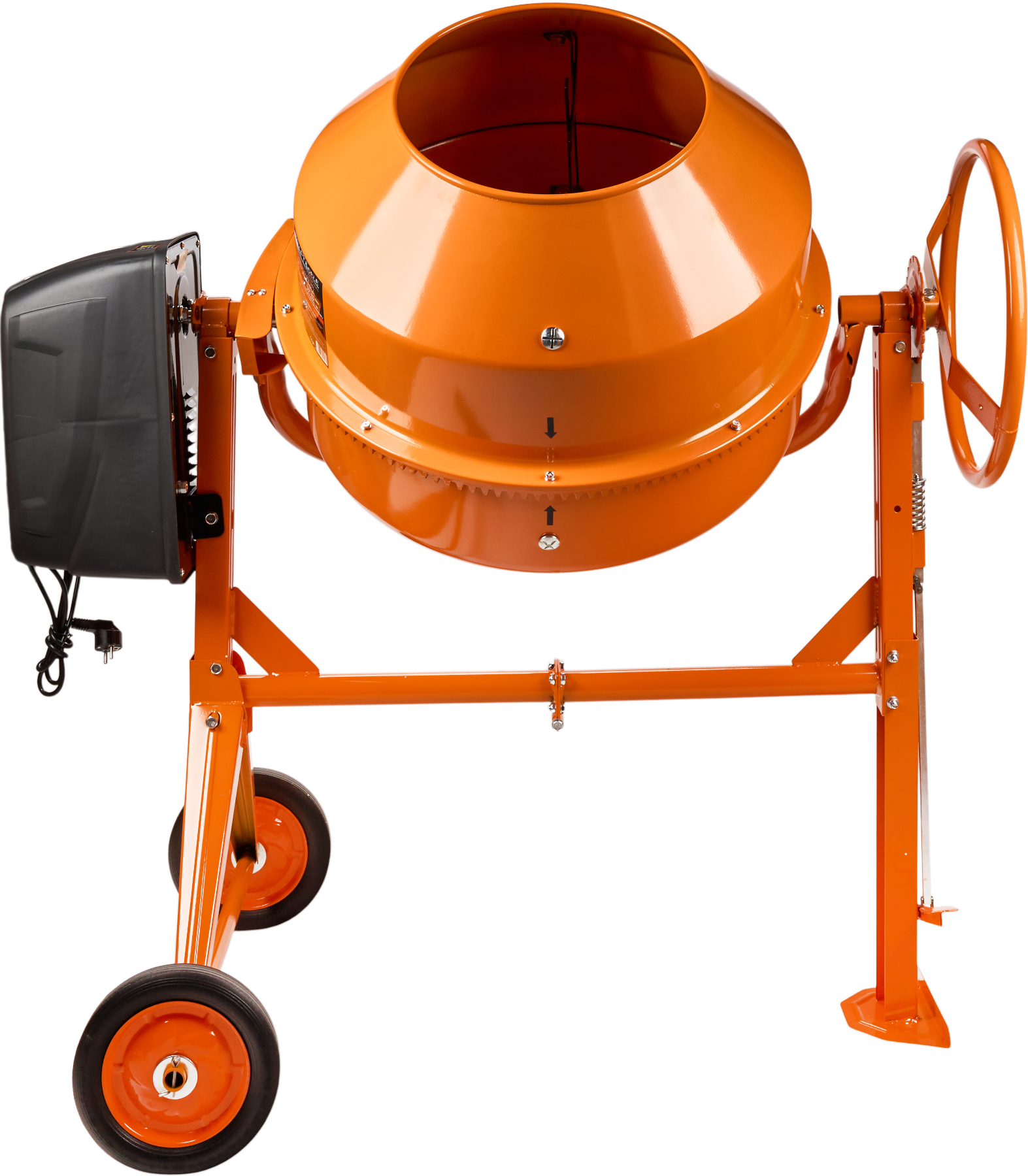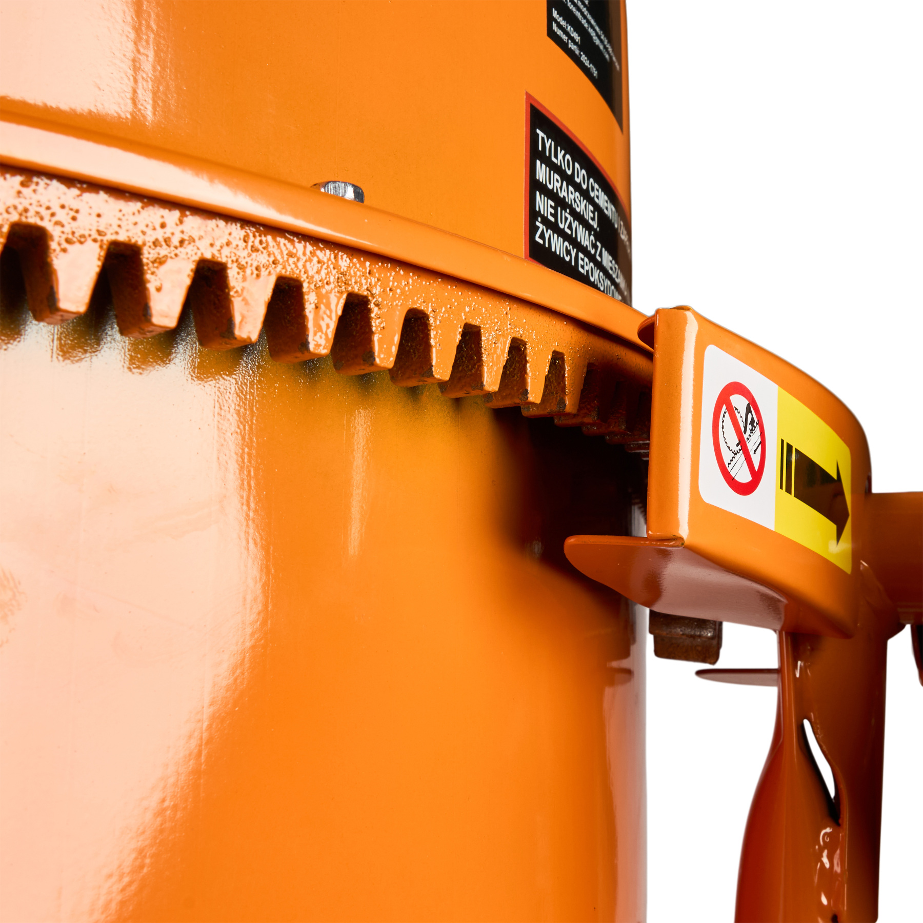 Solidna konstrukcja, pojemny bęben wykonany z jednego kawałka stalowej blachy oraz żeliwny wieniec i zębatka zapewniają długotrwałe i bezawaryjne użytkowanie. Dodatkowo betoniarka wyposażona jest w wygodne koło przechyłu oraz gumową uszczelkę bębna, gwarantującą szczelność.