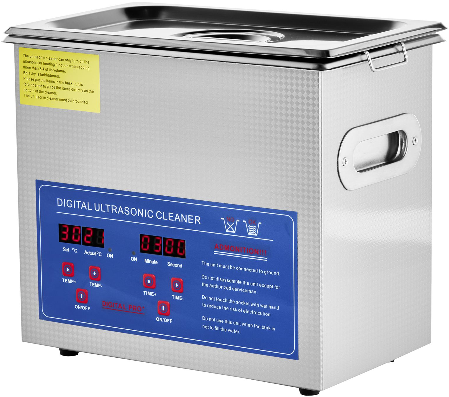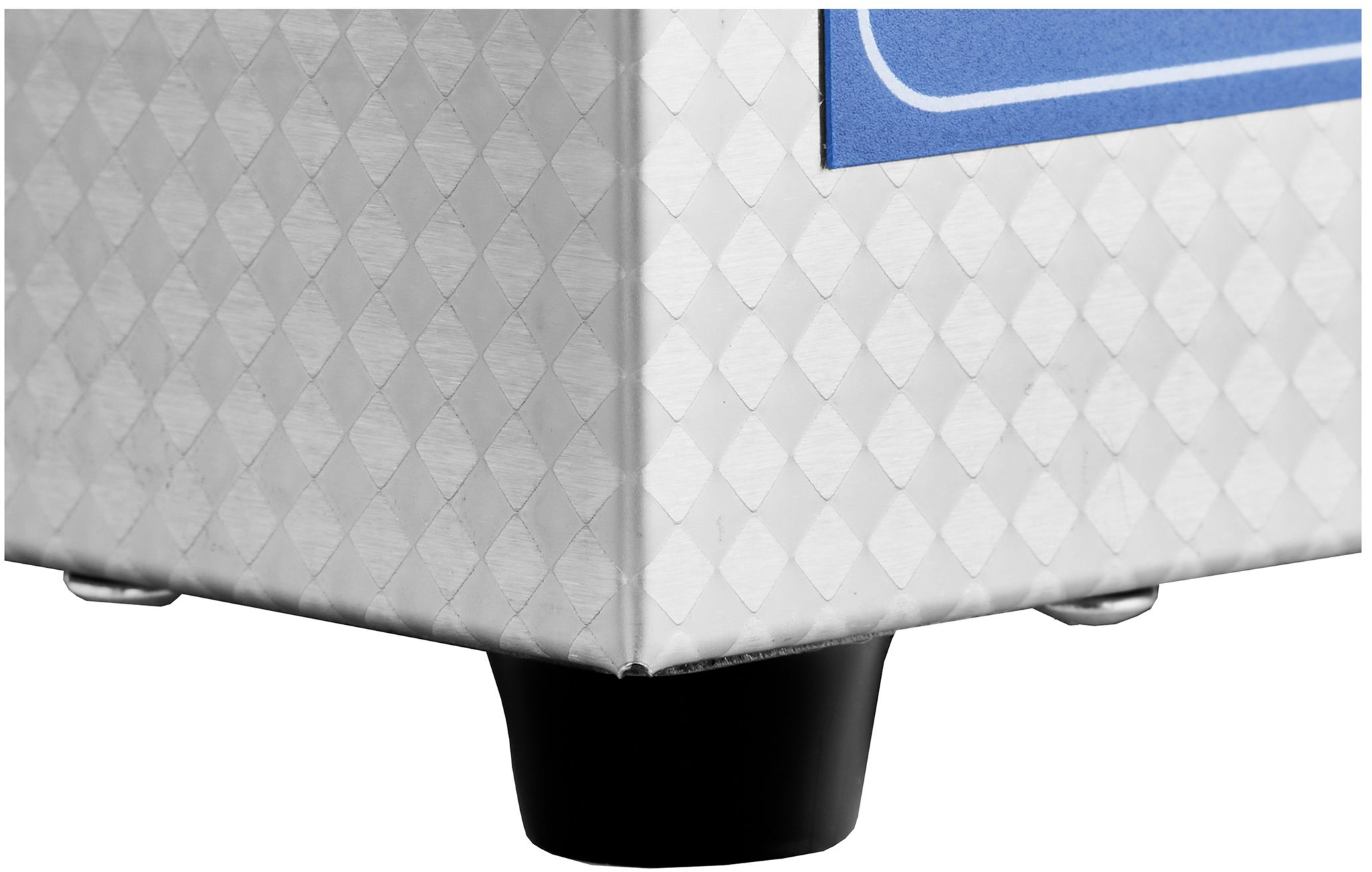 Urządzenie zostało wyposażone w cyfrowy panel sterowania z wyświetlaczem LED, który pokazuje aktualną temperaturę oraz ustawiony czas pracy. Za pomocą przycisków można regulować temperaturę oraz czas, a także osobno sterować funkcją grzania i ultradźwięków. Dzięki temu użytkownik ma pełną kontrolę nad procesem czyszczenia i może dopasować parametry do konkretnego zastosowania. Dodatkowo na tylnej części obudowy znajduje się główny przełącznik zasilania, który umożliwia szybkie i wygodne uruchamianie urządzenia.