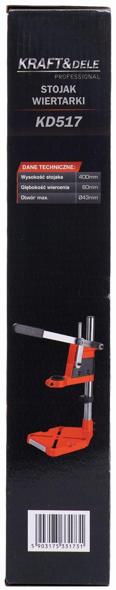 KD517 to stabilny i precyzyjny statyw do wiertarki marki KRAFT&DELE, zaprojektowany z myślą o wierceniu otworów z pełną kontrolą i powtarzalnością. Wysokość całkowita 40 cm oraz solidna konstrukcja z aluminium i tworzywa sztucznego zapewniają wysoką wytrzymałość przy jednoczesnym zachowaniu niskiej wagi, co czyni statyw idealnym narzędziem do warsztatu, garażu czy prac majsterkowych.