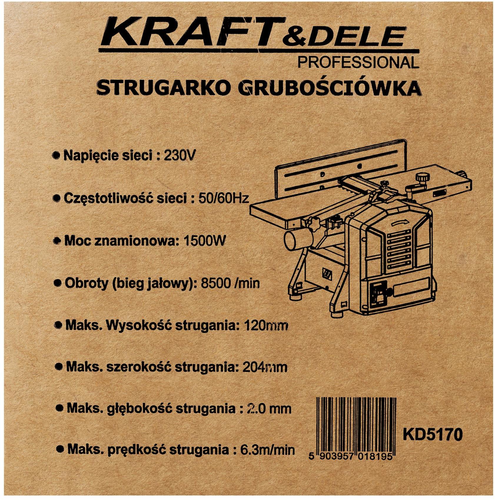 KD5170 to wydajna heblarka elektryczna marki Kraft&Dele, stworzona z myślą o profesjonalnych warsztatach stolarskich i domowych pracach z drewnem. Urządzenie pozwala na szybkie i precyzyjne struganie desek, belek i elementów drewnianych, gwarantując idealnie gładką powierzchnię.