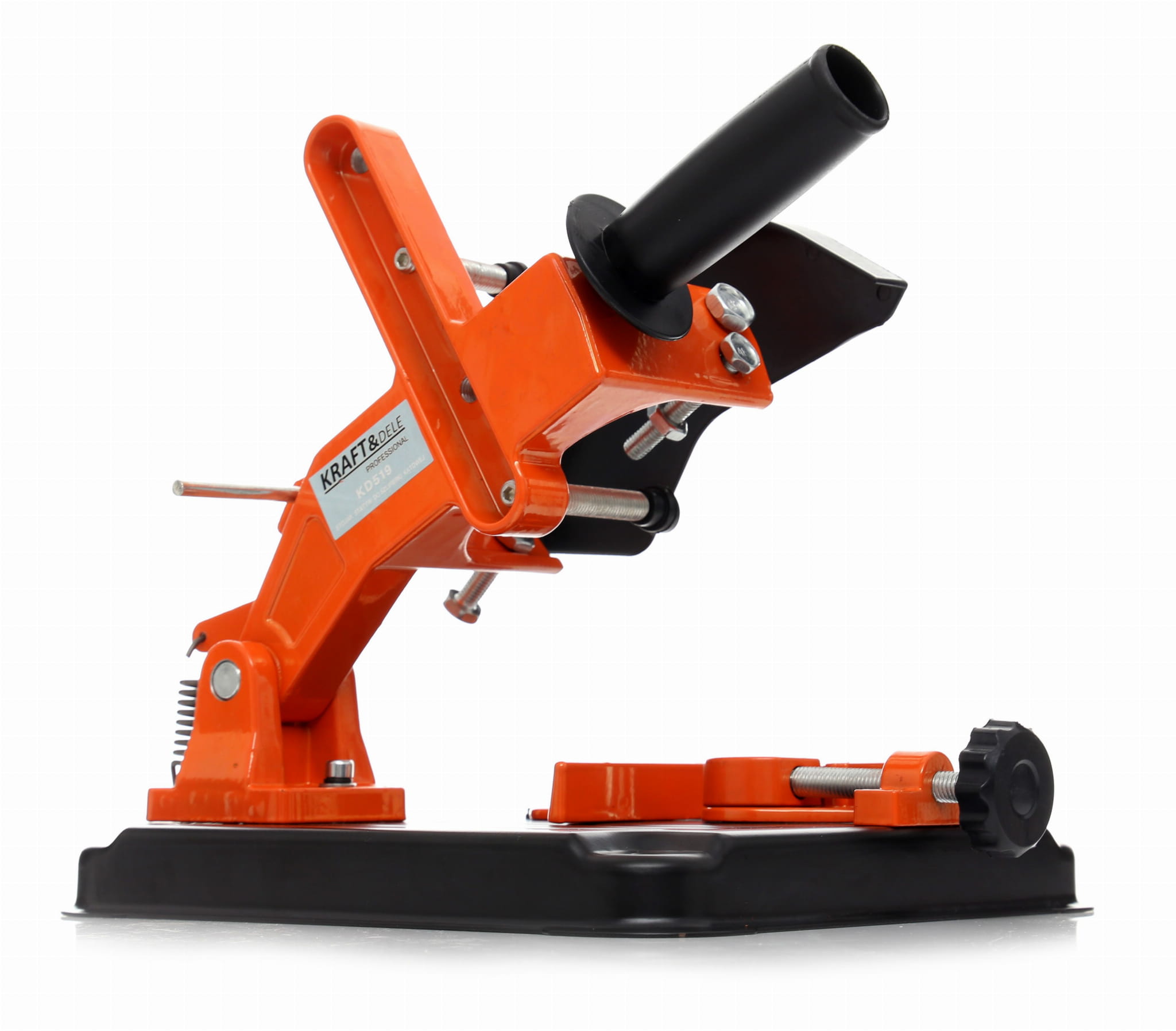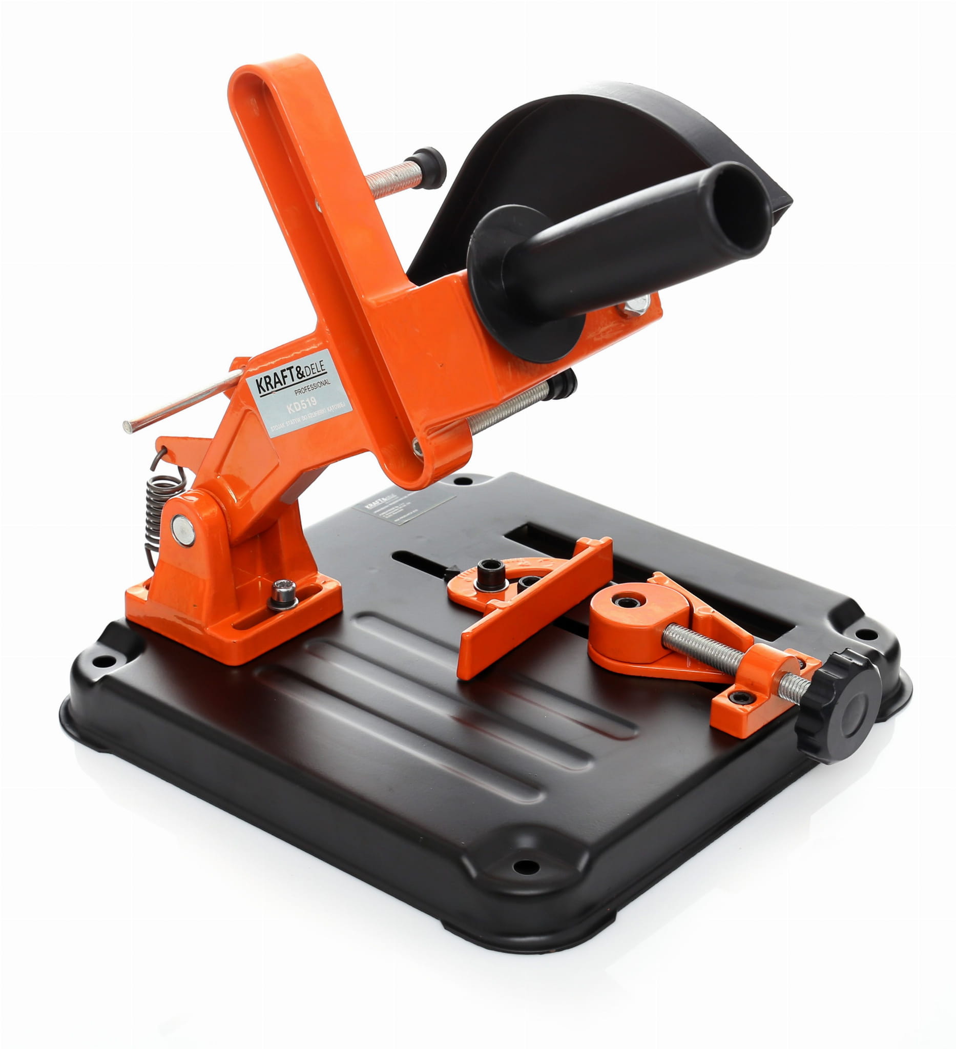 Stojak / statyw firmy KRAFT&DELE umożliwa wygodne i precyzyjne przecinanie elementów metalowych za pomocą szlifierek kątowych.